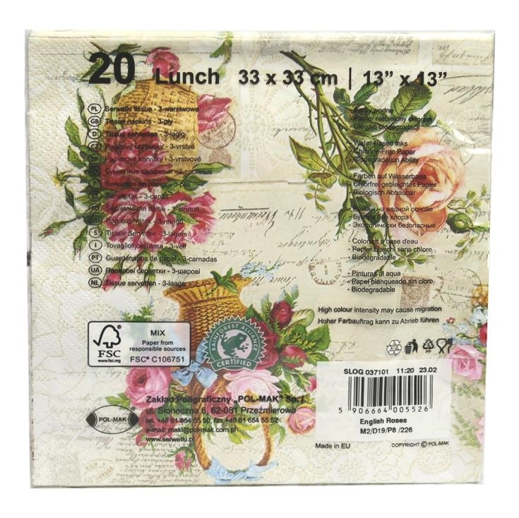 Serwetki Maki róże napisy retro