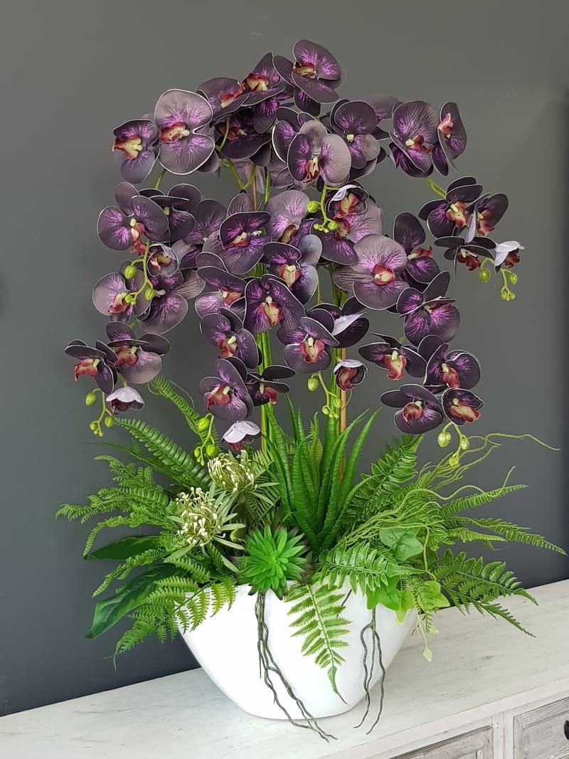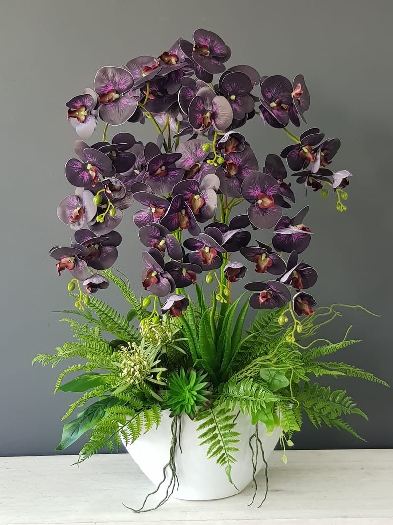 Oryginalna kompozycja z gumowanych storczyków oraz wysokiej jakości roślin sztucznych oraz ceramiki. Płatki kwiatów orchidei są nieco sztywniejsze niż w przypadku silikonowych storczyków, jednak prezentują się równie dobrze. Storczyk w dużej donicy idealnie sprawdzi się jako ozdoba mieszkań zarówno w stylu klasycznym oraz nowoczesnym. Pięknie będzie się prezentowała na komodzie czy dużym parapecie. Polecamy jako oryginalny pomysł na prezent.