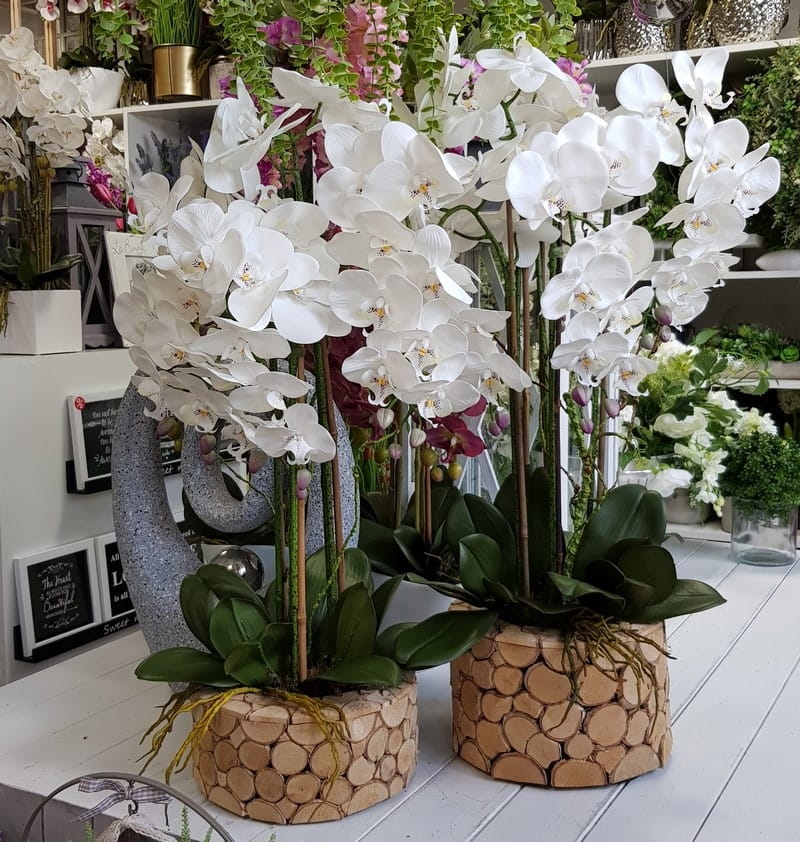 Oryginalna, niewielka kompozycja roślinna, wykonana z wysokiej jakości silikonowych storczyków. Idealnie sprawdzi się jako ozdoba mieszkań zarówno w stylu klasycznym oraz nowoczesnym. Pięknie będzie się prezentowała na komodzie czy parapecie. Polecamy jako oryginalny pomysł na prezent. Oferta dotyczy storczyka w wyższej donicy.