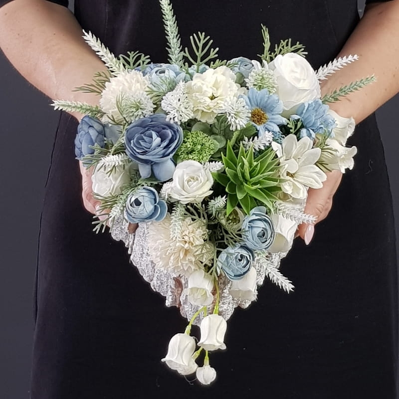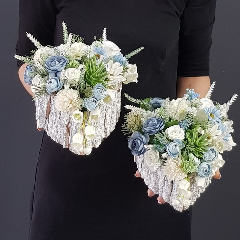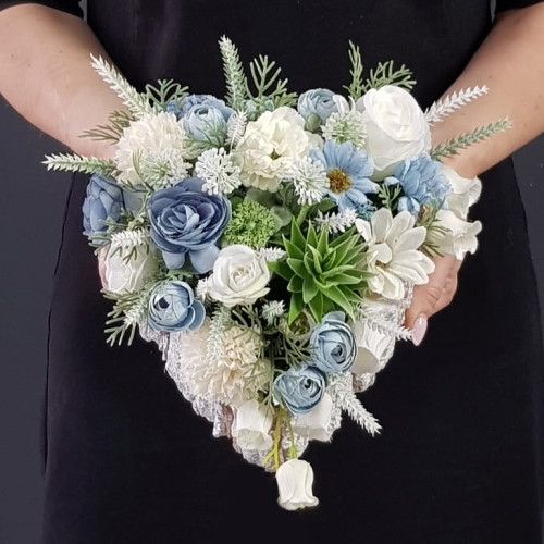 Stroik na grób kompozycja funeralna nagrobna serce małe Noa B niebieskie