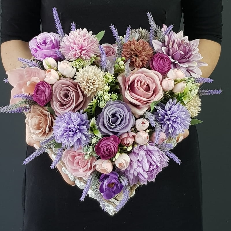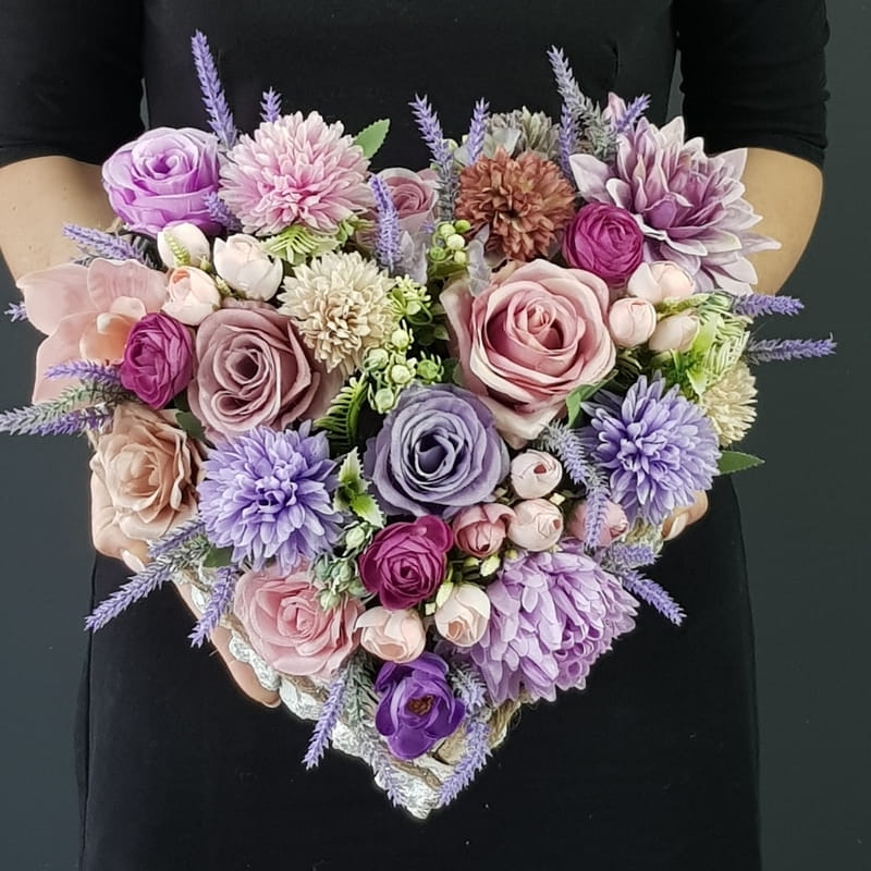 Stroik na grób kompozycja funeralna nagrobna serce średnie Noa B fiolet róż
