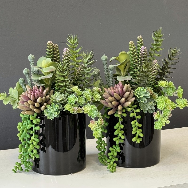 Sukulenty kaktusy czarna donica kompozycja Milet