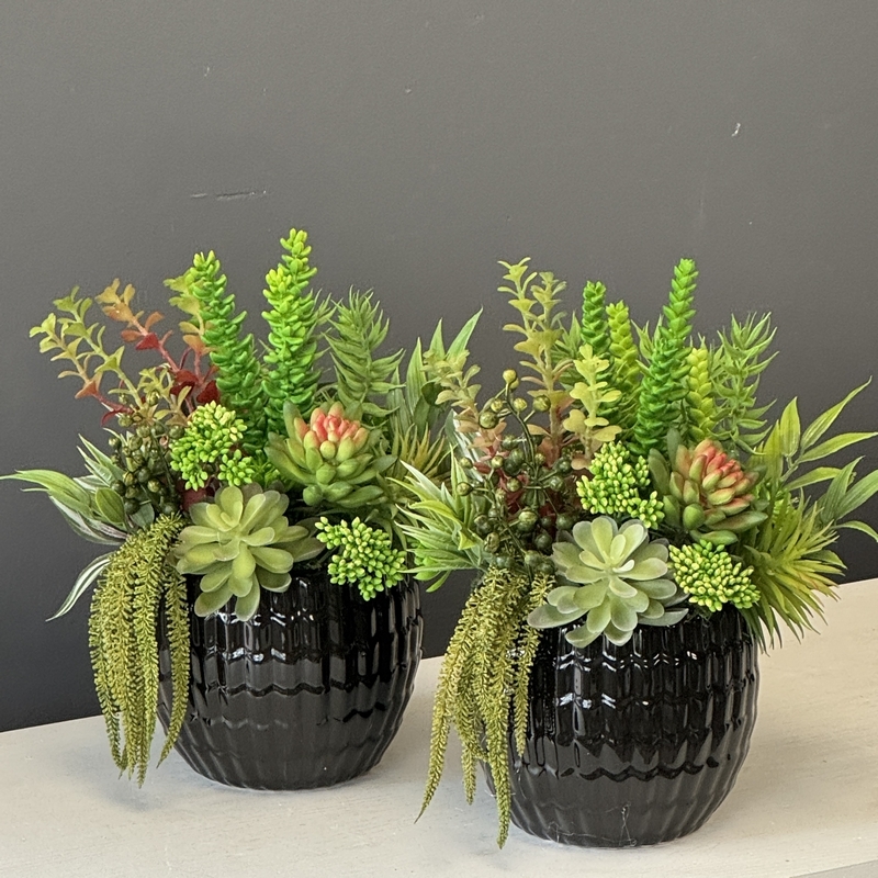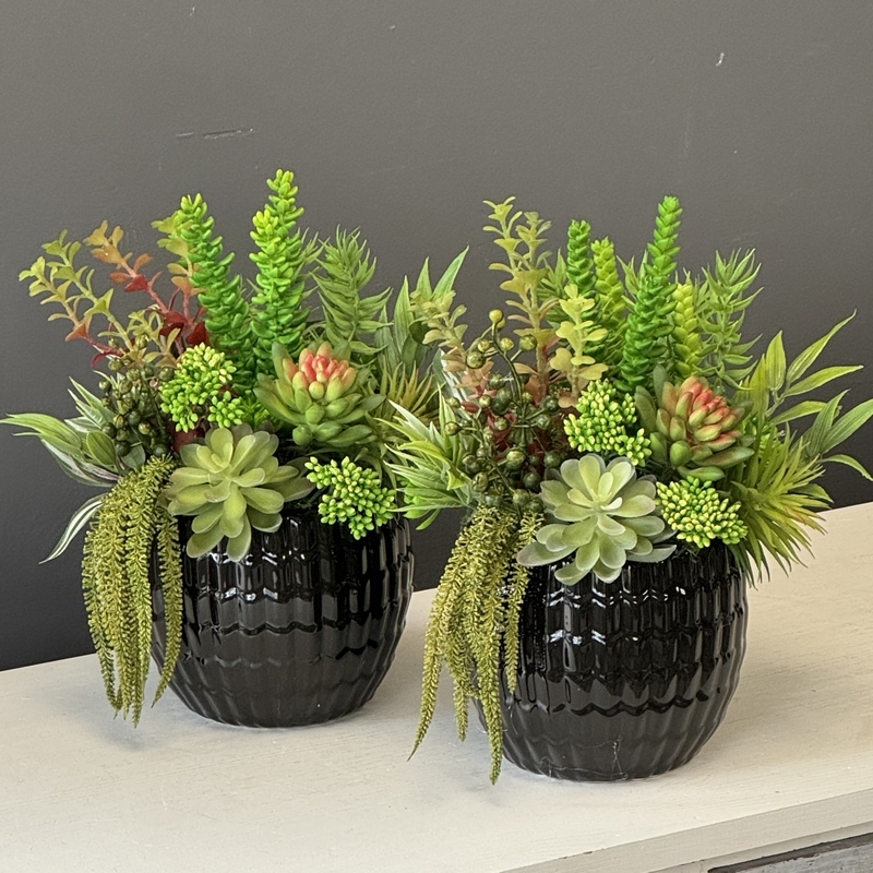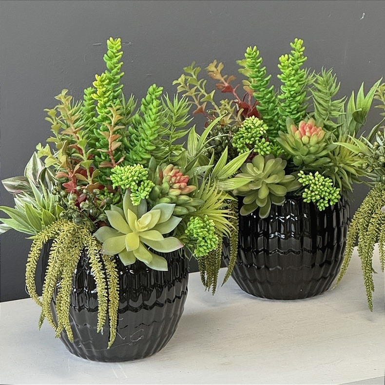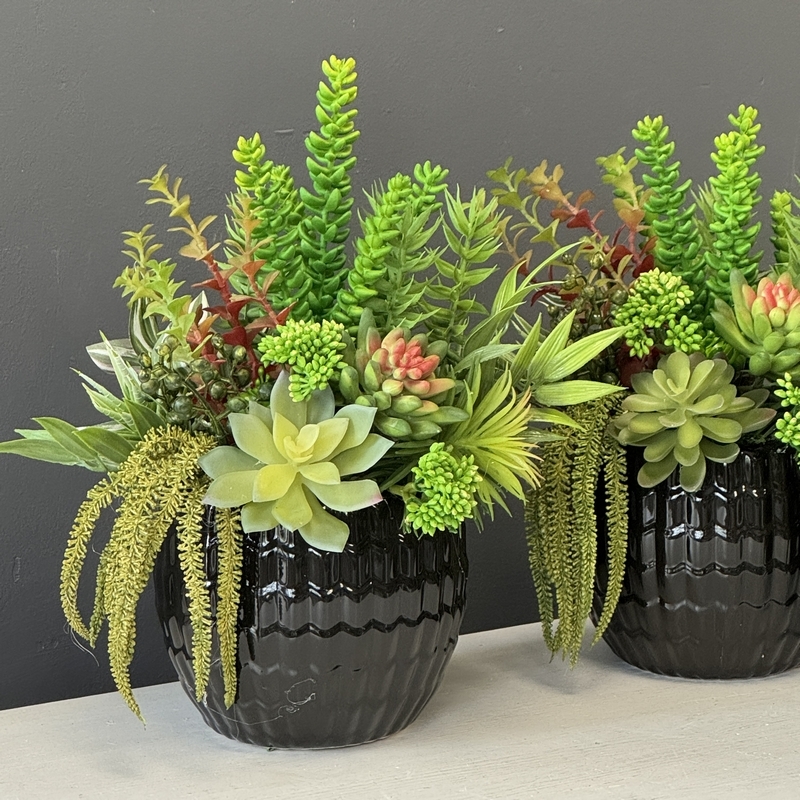Sukulenty kaktusy czarna donica kompozycja Tales