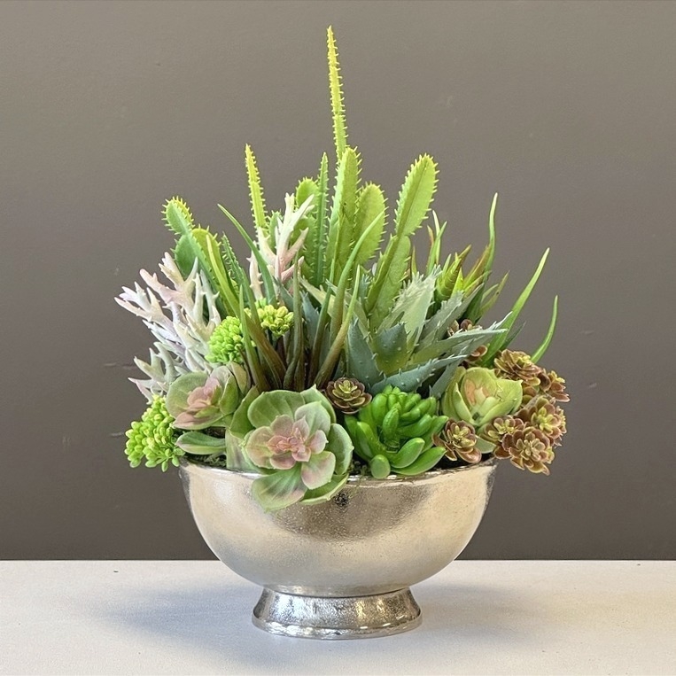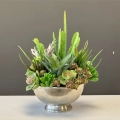 Sukulenty kaktusy donica okrągła metal silver S