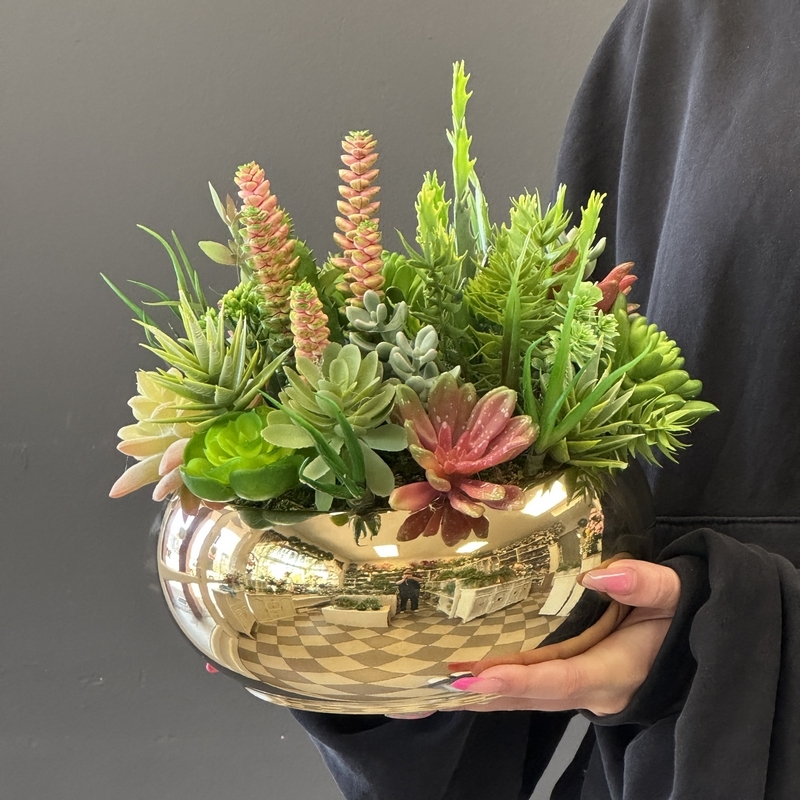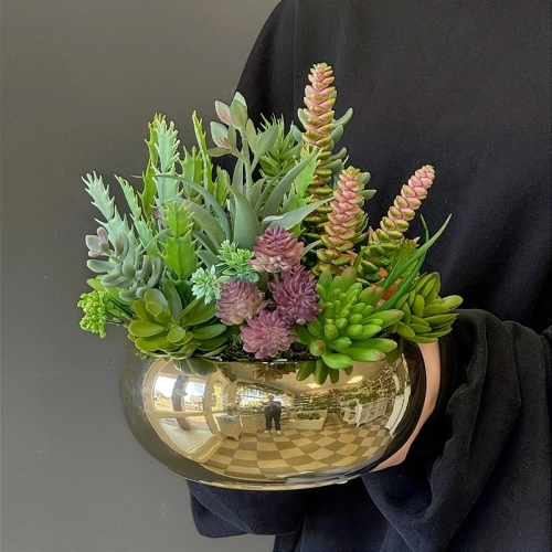 Sukulenty kaktusy donica okrągła misa gold M