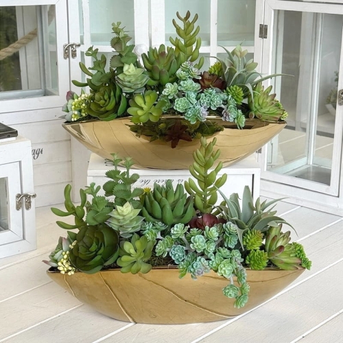 Sukulenty kaktusy donica podłużna Fima gold wz.3