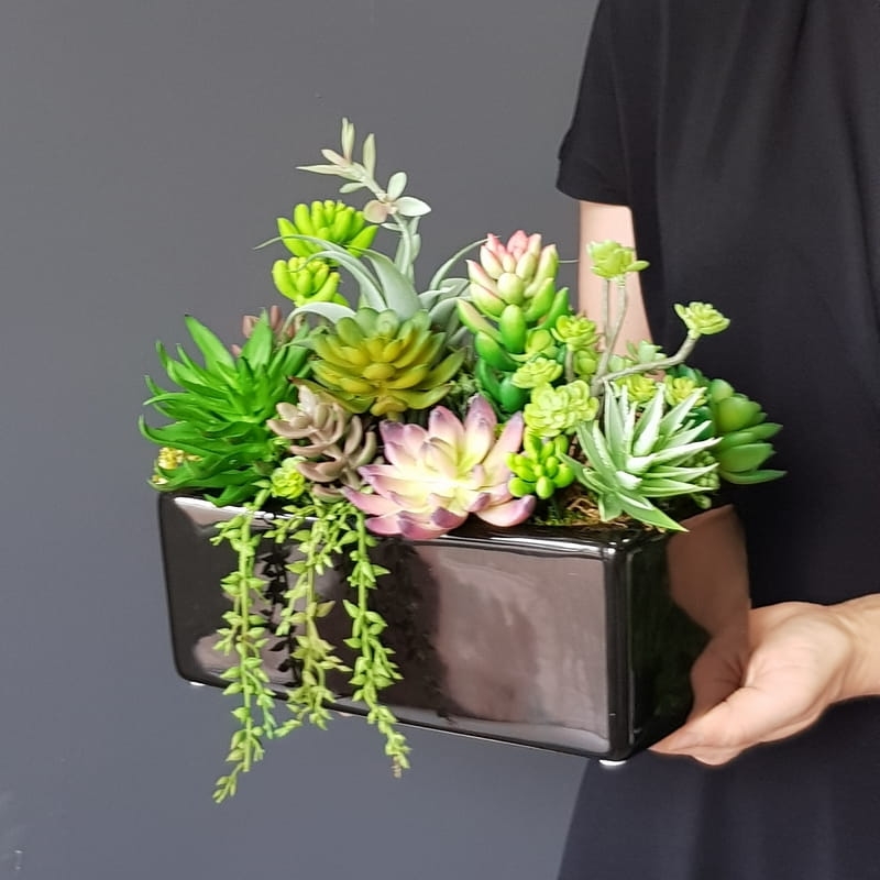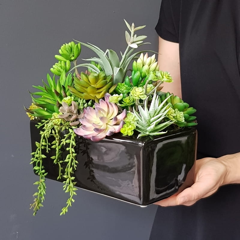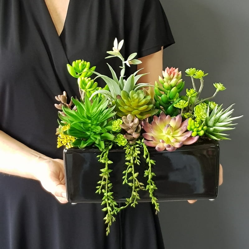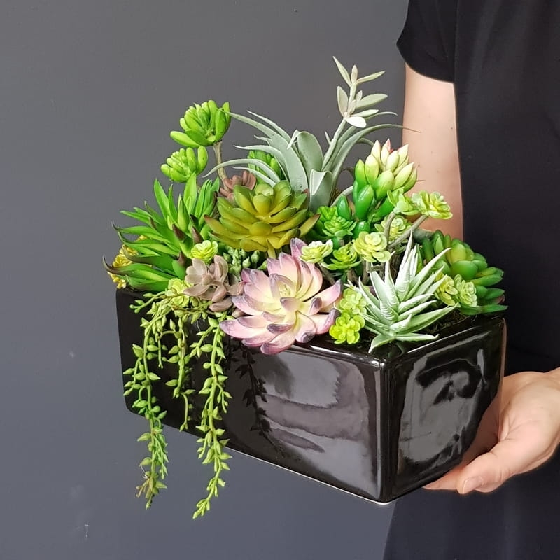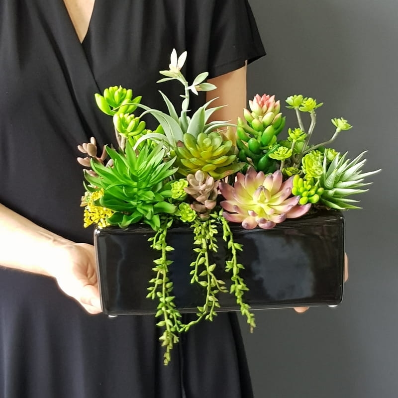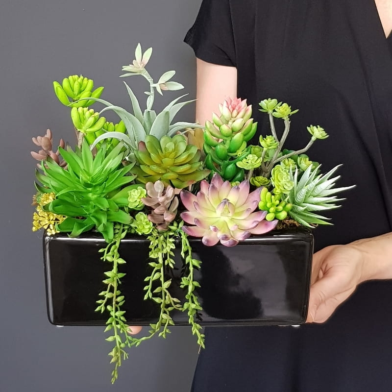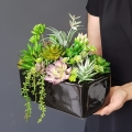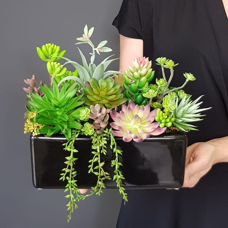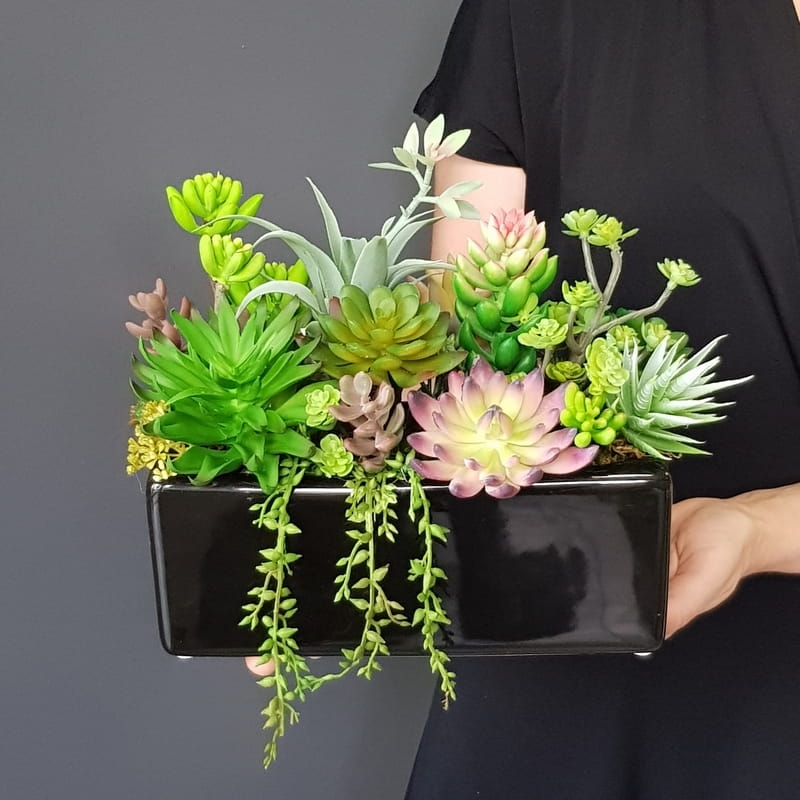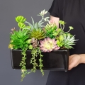 Sukulenty kaktusy donica podłużna Grace czarna 26cm wz.1