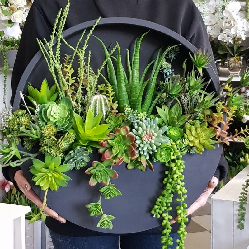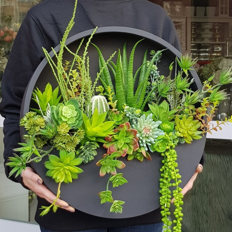 Sukulenty kaktusy kompozycja donica ścienna Esther Czarna L 50cm