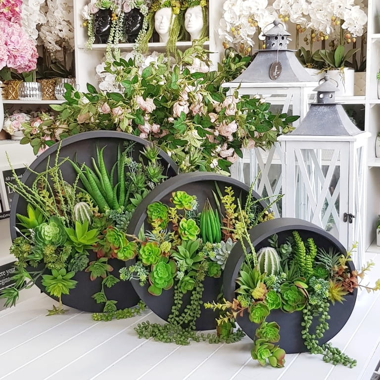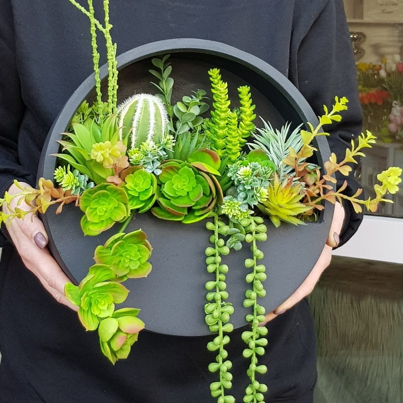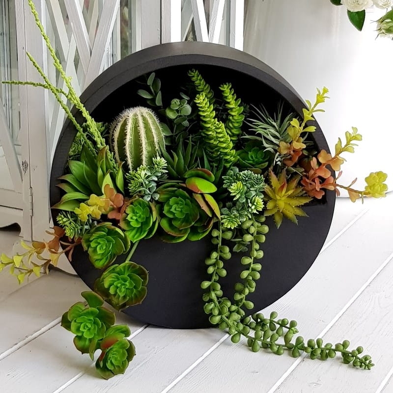 Sukulenty kaktusy kompozycja donica ścienna Esther Czarna S 30cm