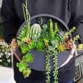 Oryginalna kompozycja roślinna, wykonana z wysokiej jakości roślin sztucznych, gumowanych sukulentów oraz ceramicznej donicy imitującej beton. Kaktusy są jakości premium, w wyglądzie i dotyku przypominają naturalne. Kompozycja idealnie sprawdzi się jako ścienna dekoracja mieszkań zarówno w stylu klasycznym oraz nowoczesnym. W donicy są otwory ułatwiające zawieszenie na ścianie. Poszczególne kompozycje mogą się minimalnie różnić układem roślin. Każda z nich jest wykonana niezwykle starannie, z zachowaniem proporcji i dopracowana w najdrobniejszych szczegółach.