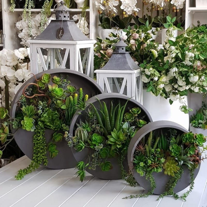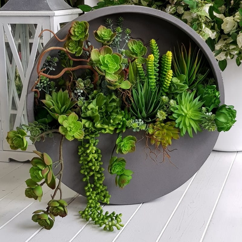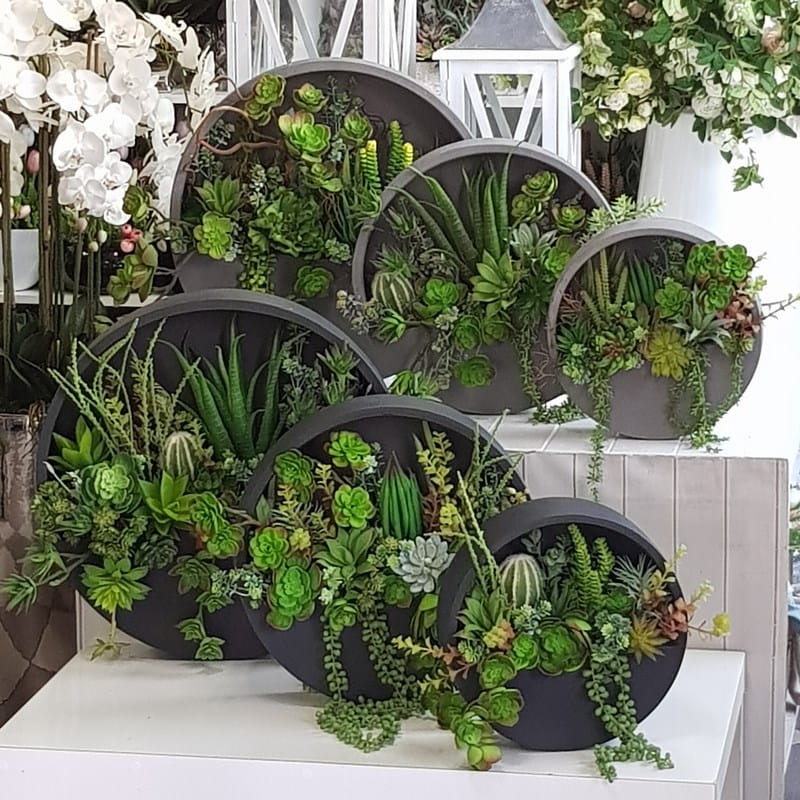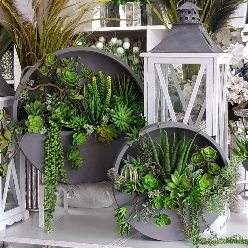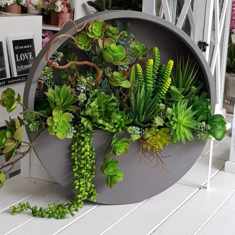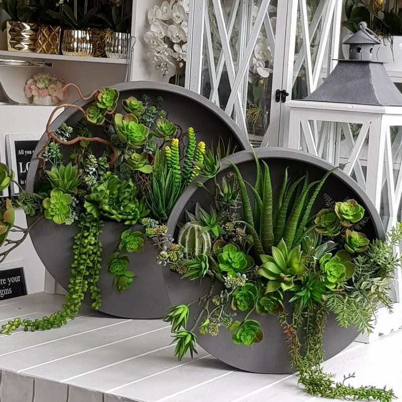 Sukulenty kaktusy kompozycja donica ścienna Esther Szara L 50cm