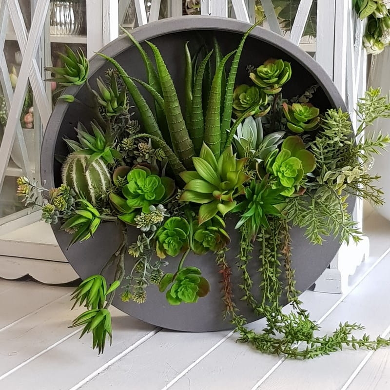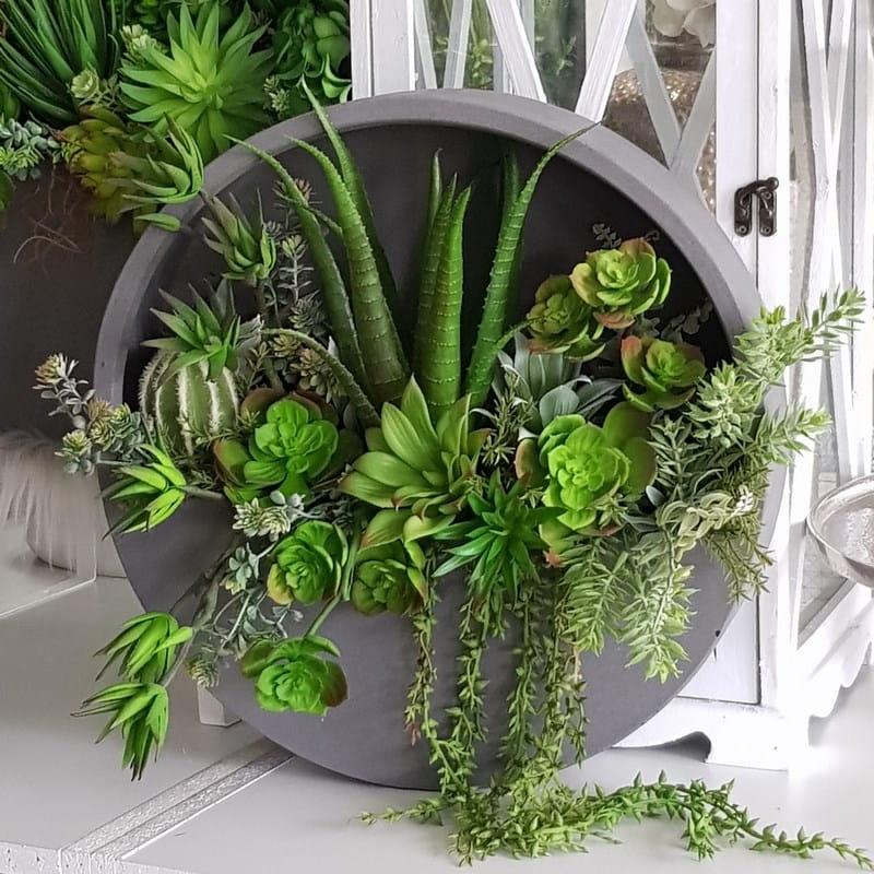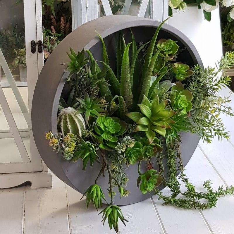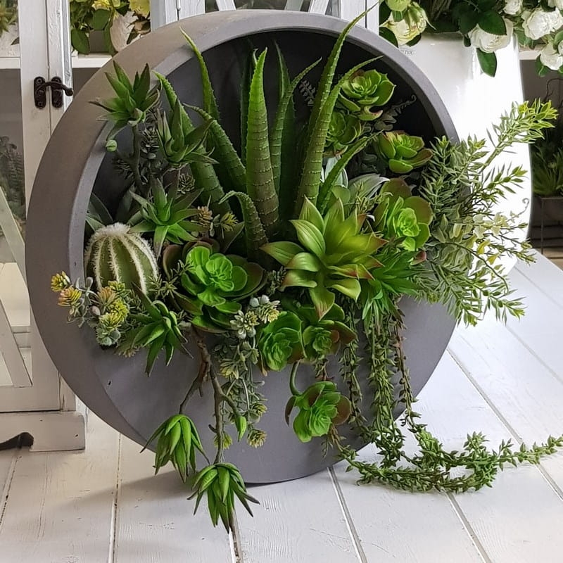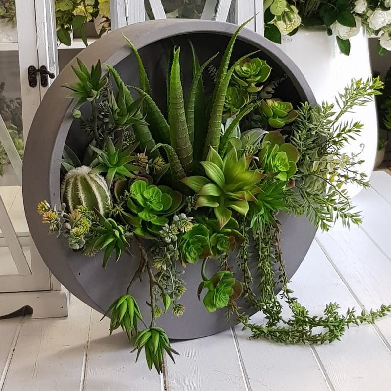 Sukulenty kaktusy kompozycja donica ścienna Esther Szara M 40cm
