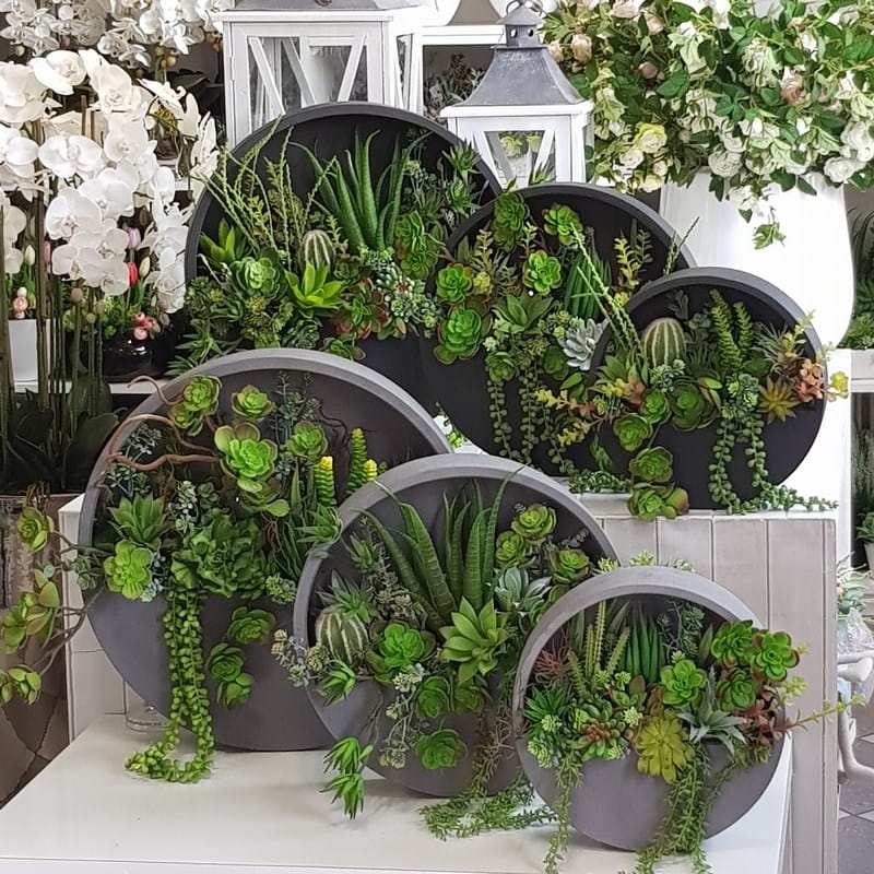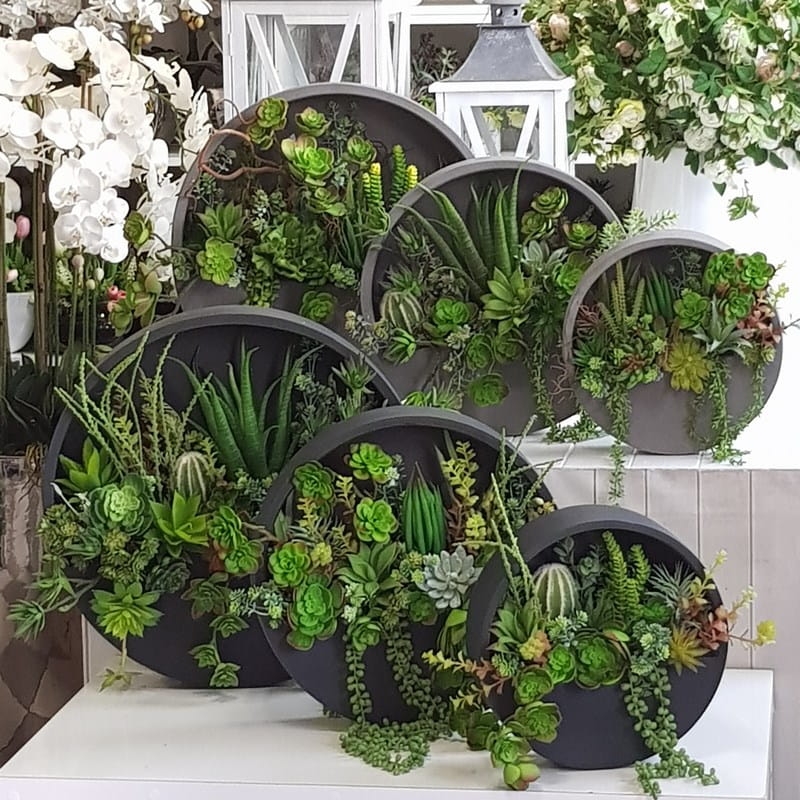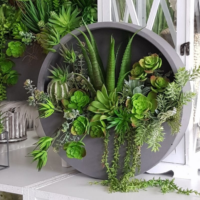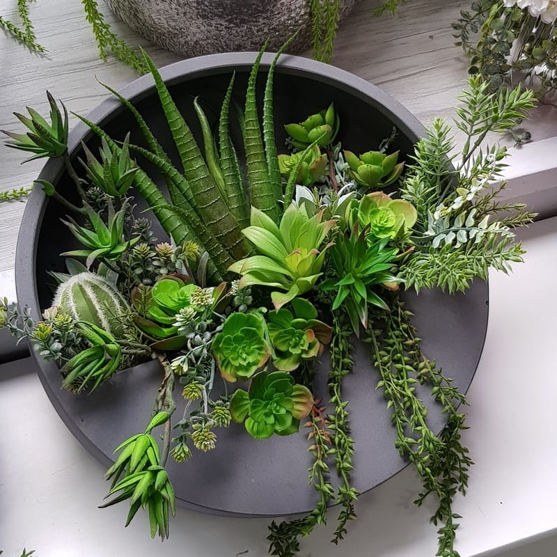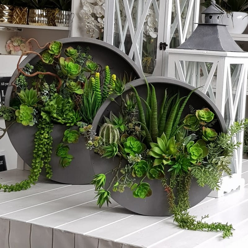 Sukulenty kaktusy kompozycja donica ścienna Esther Szara M 40cm