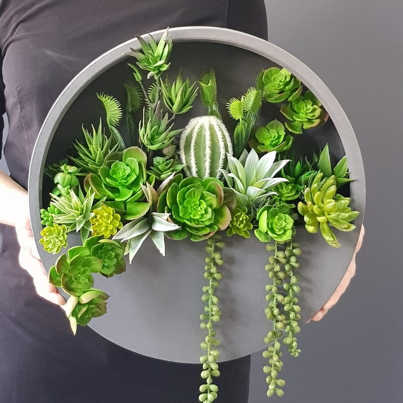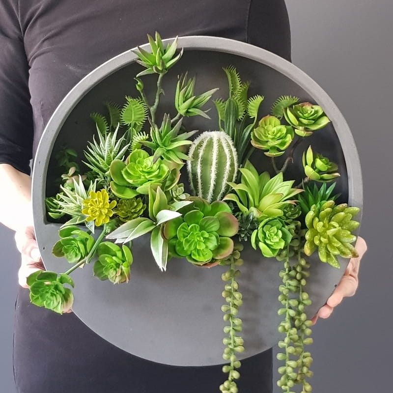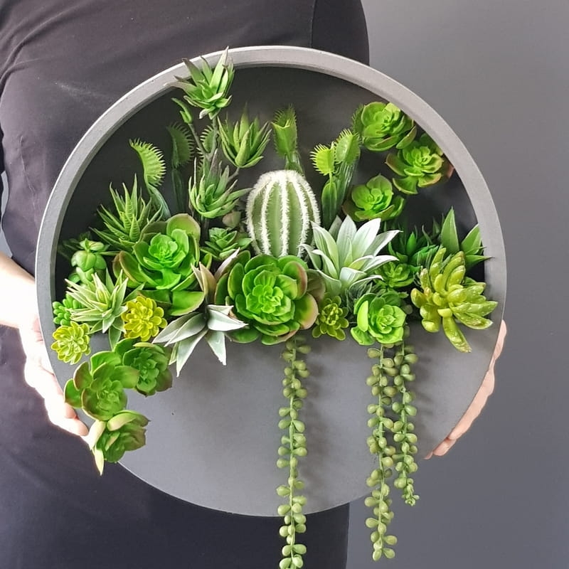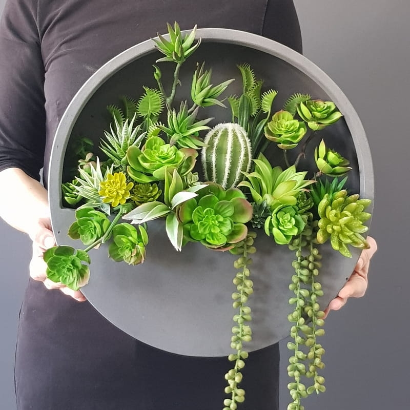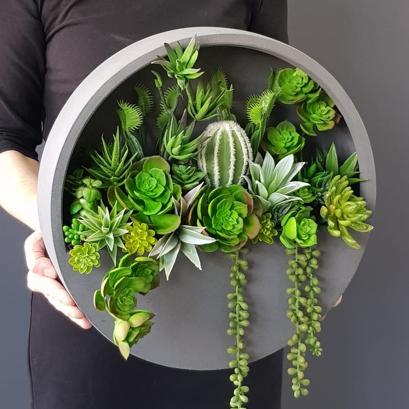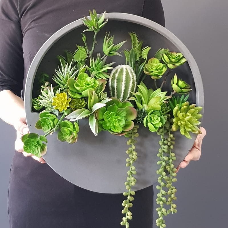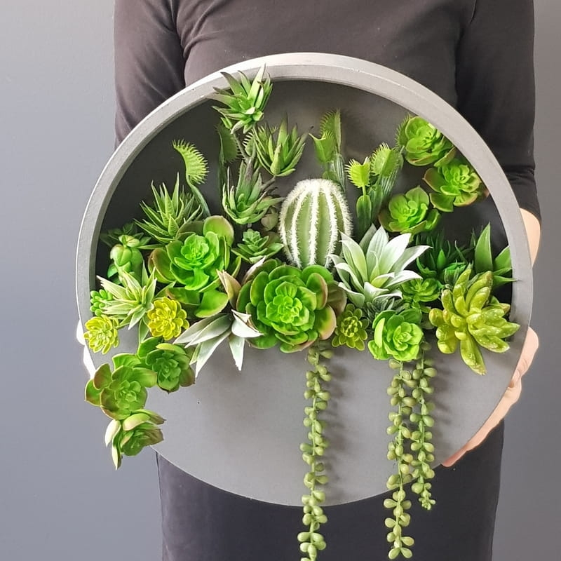 Sukulenty kaktusy kompozycja donica ścienna Esther Szara M 40cm