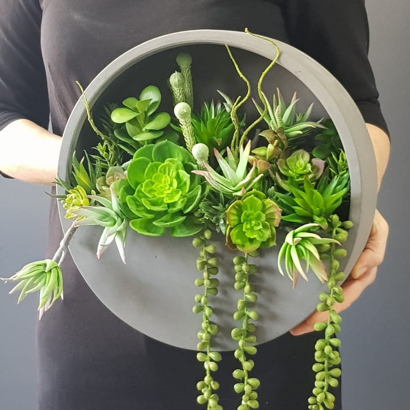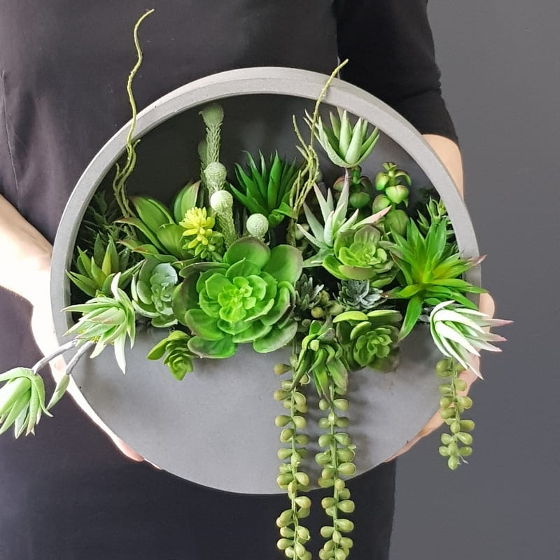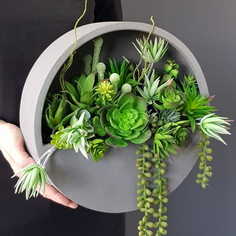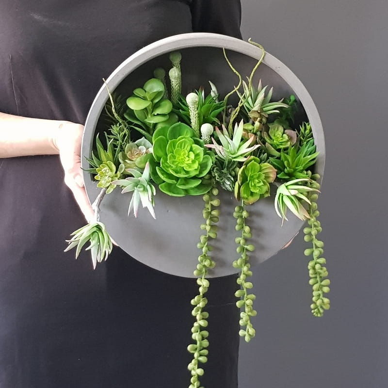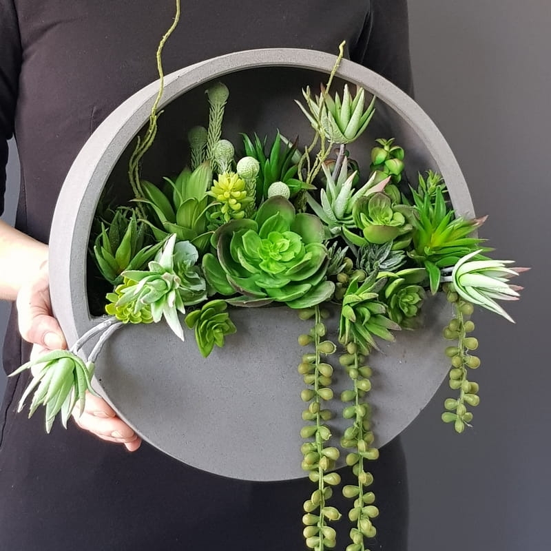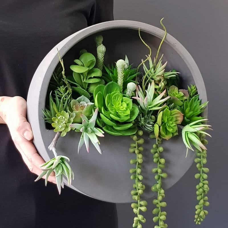 Sukulenty kaktusy kompozycja donica ścienna Esther Szara S 30cm B