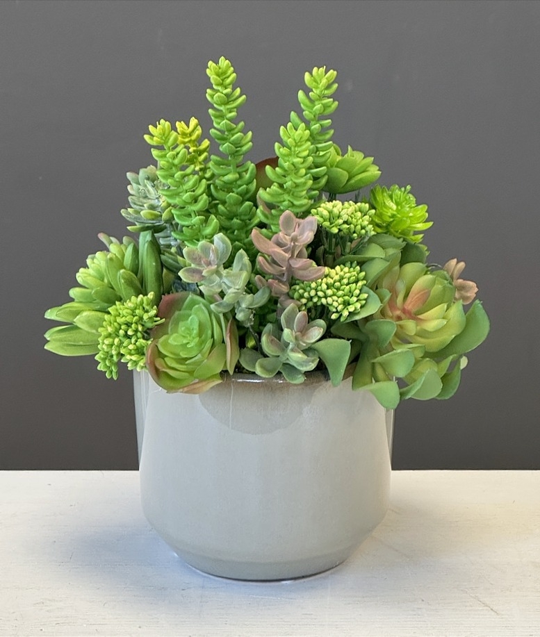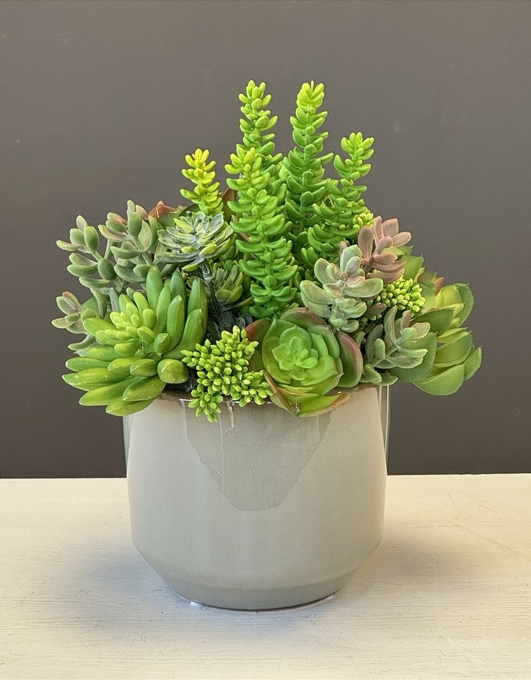 Sukulenty kaktusy szara donica kompozycja NIdes