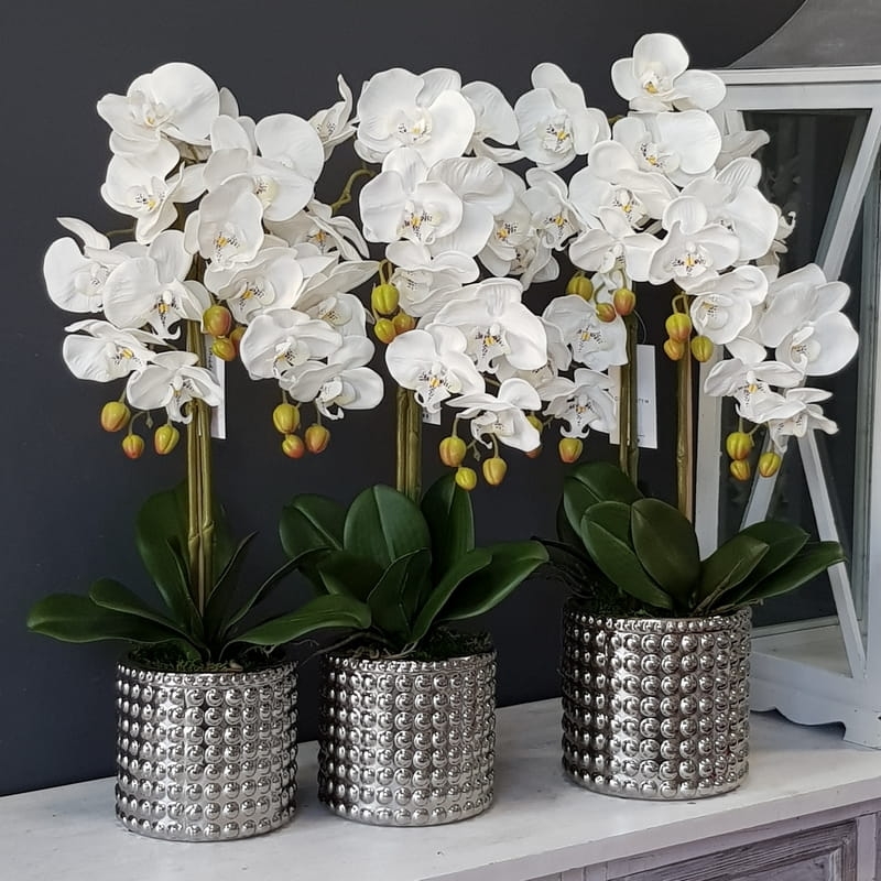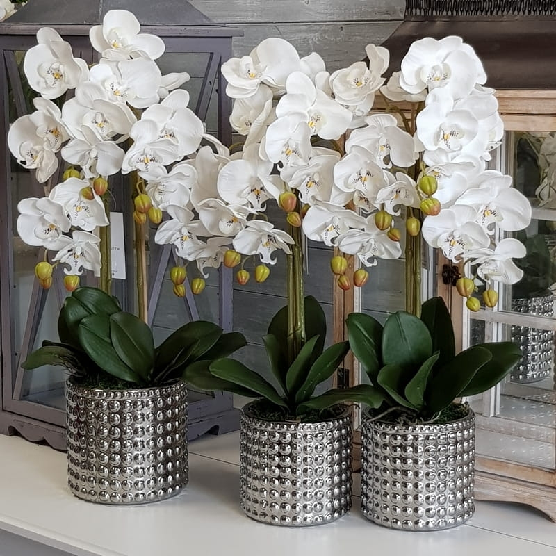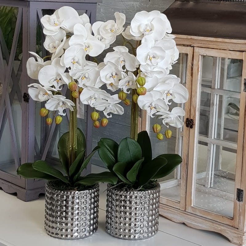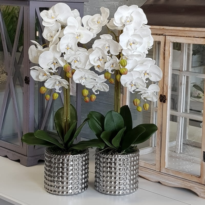 Sztuczny storczyk orchidea silikon biały Drop silver L
