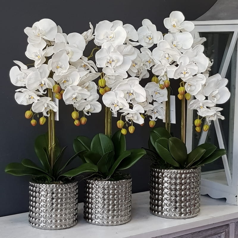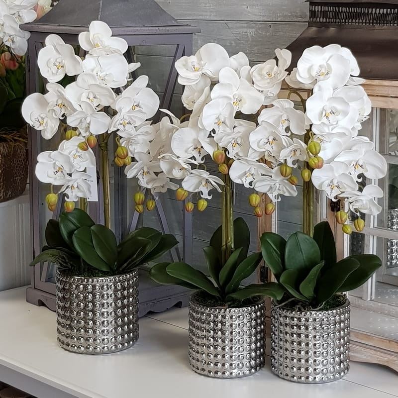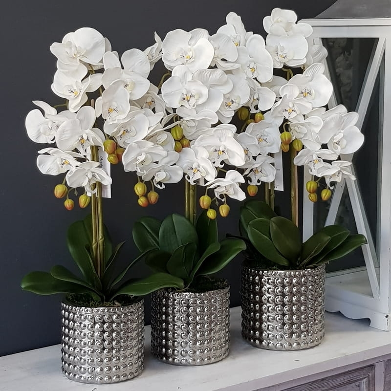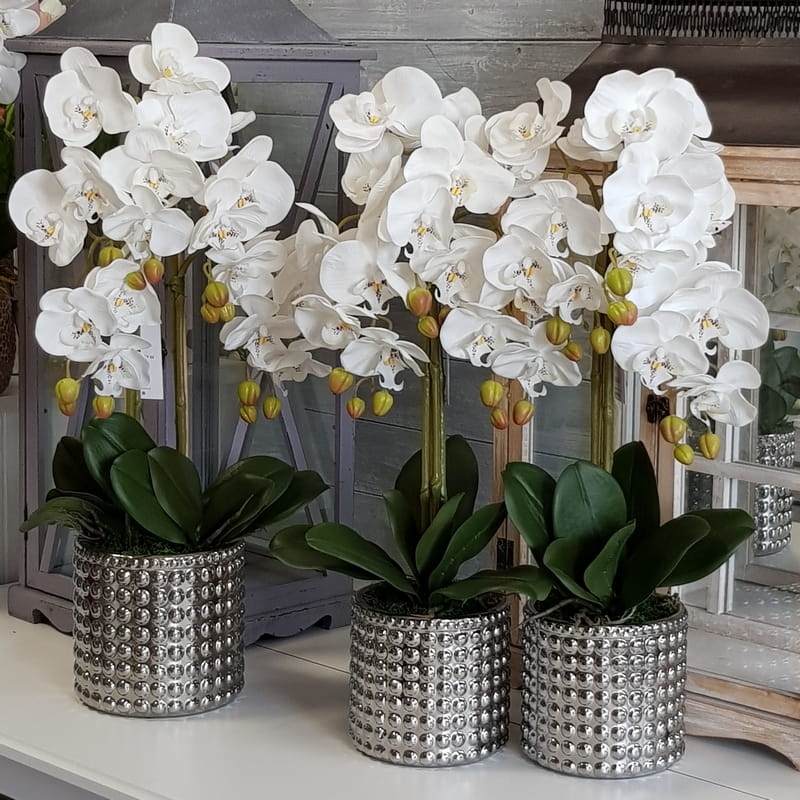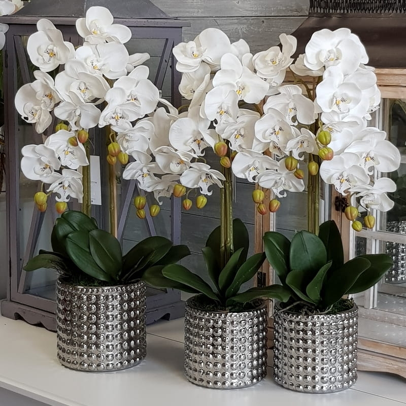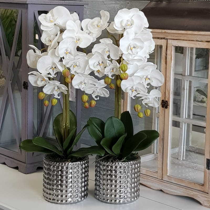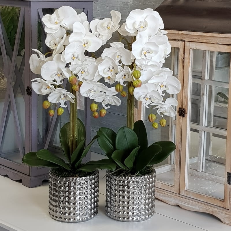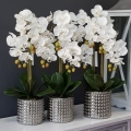 Sztuczny storczyk orchidea silikon biały Drop silver M
