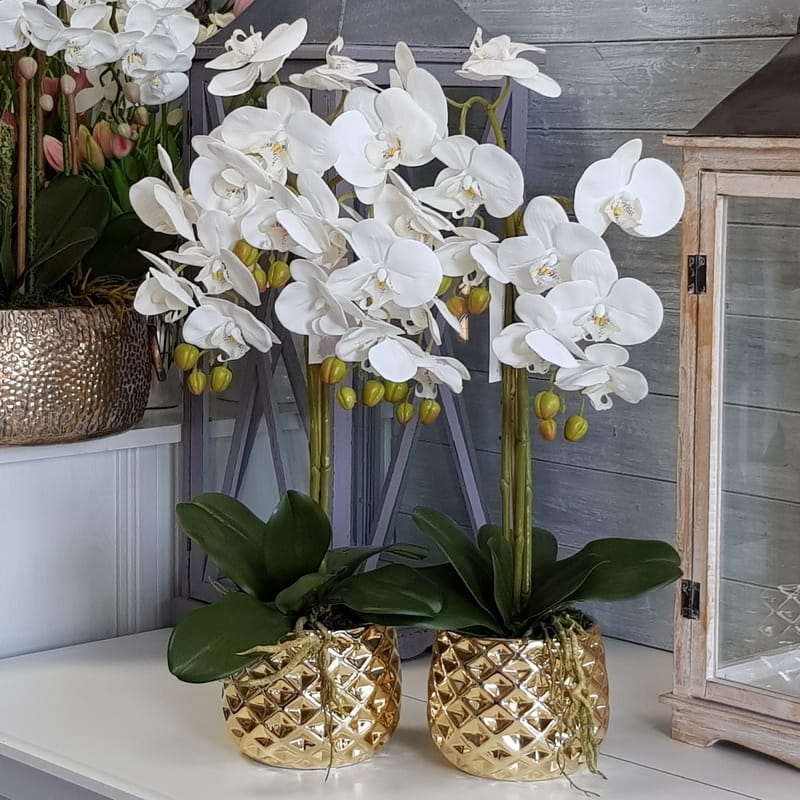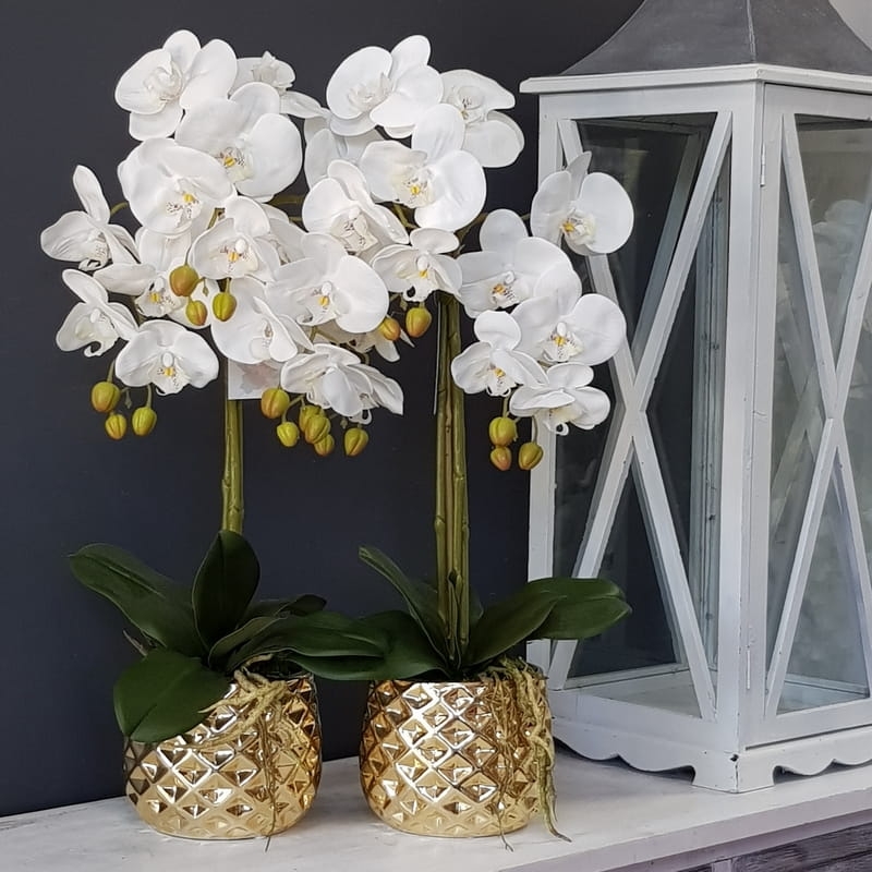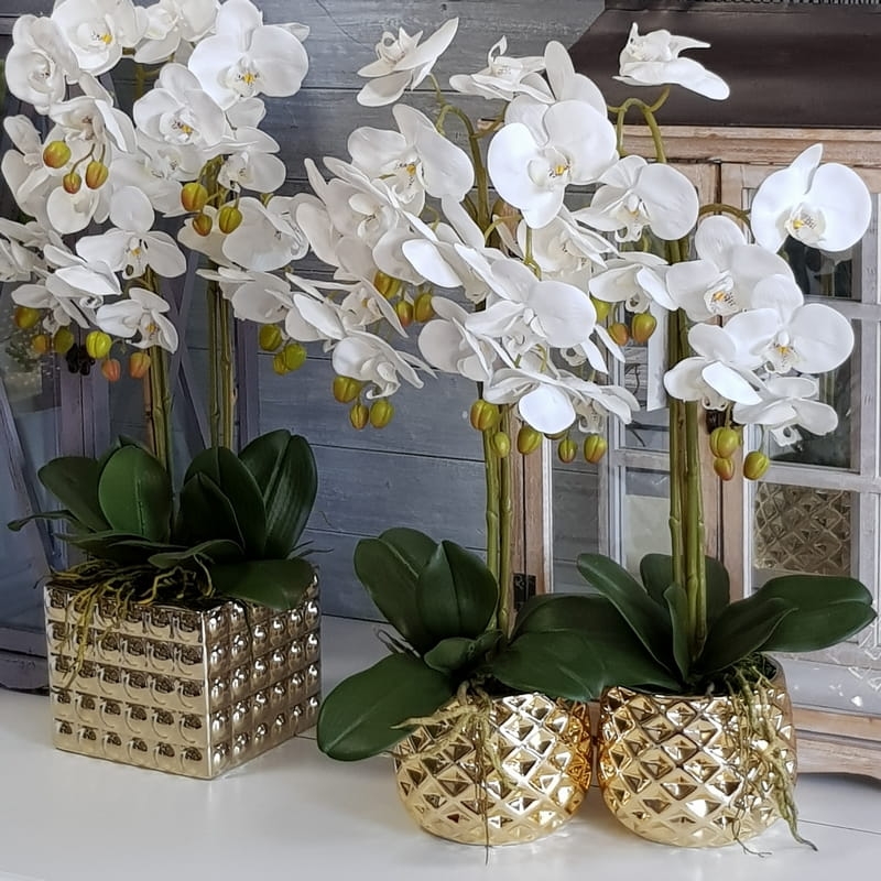Sztuczny storczyk orchidea silikon biały Mika gold