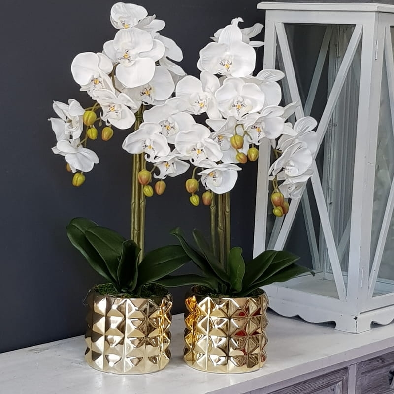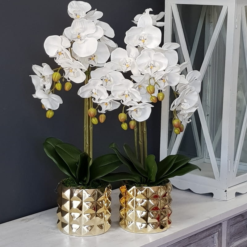 Sztuczny storczyk orchidea silikon biały Nadia gold