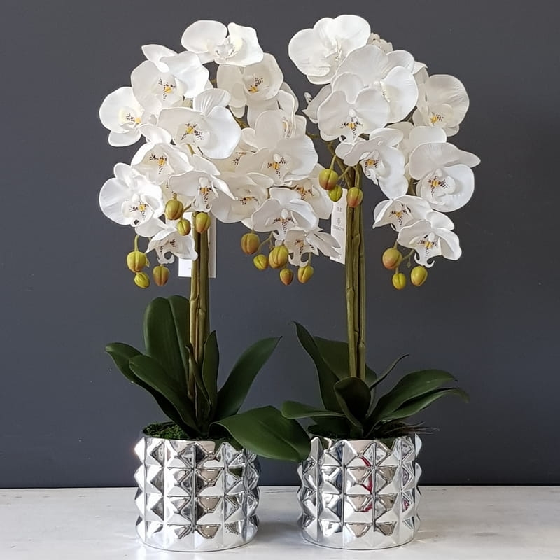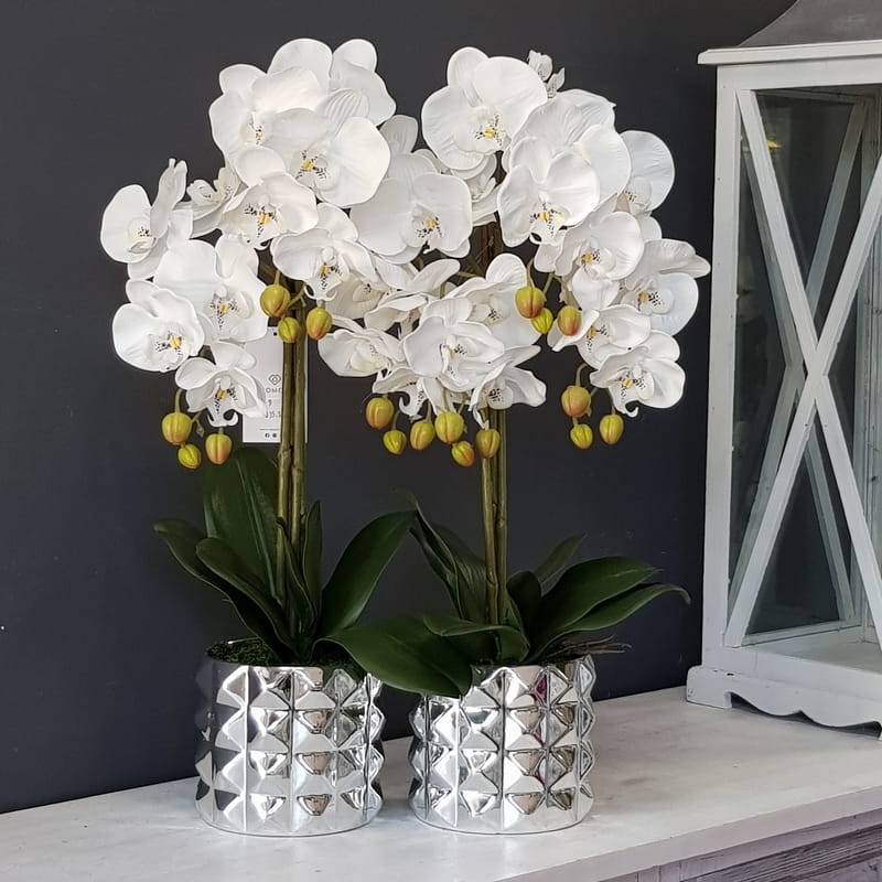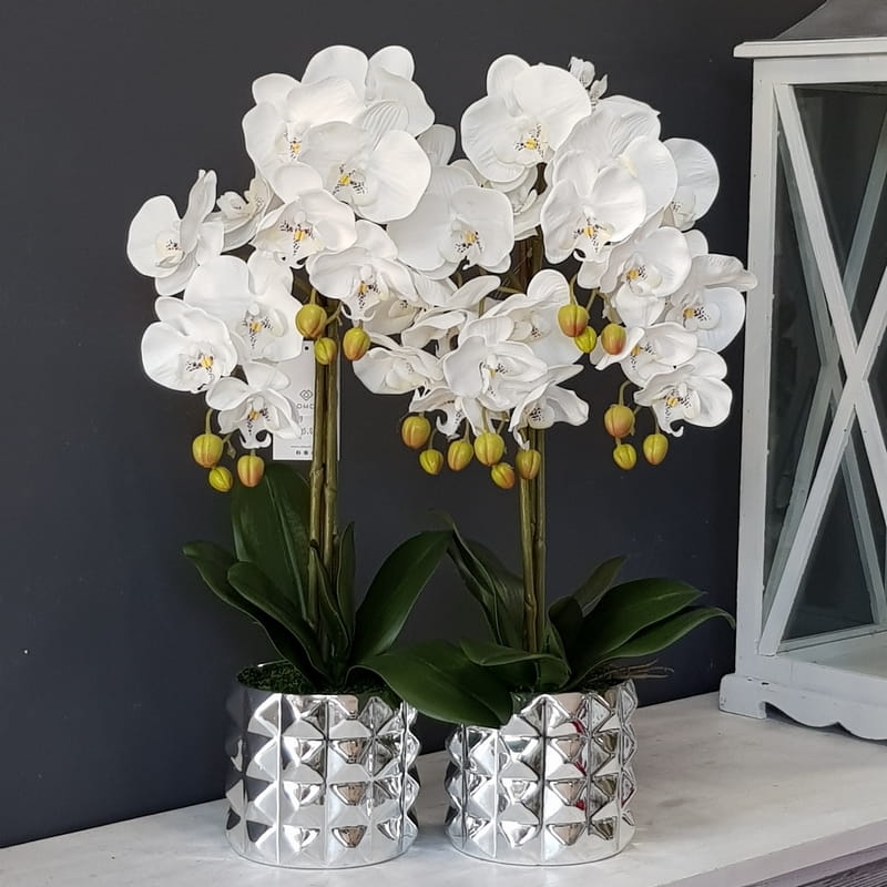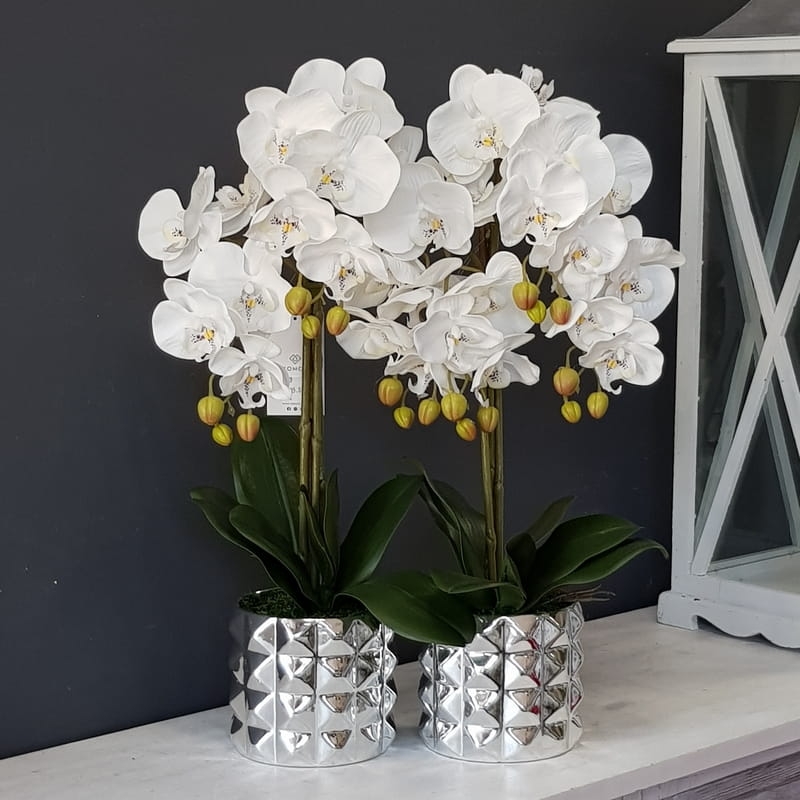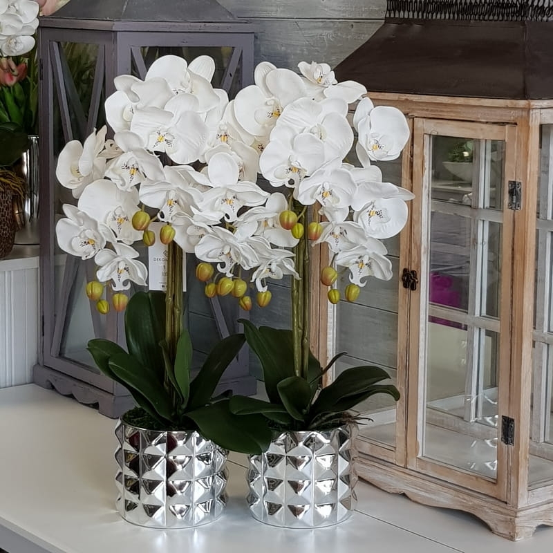 Sztuczny storczyk orchidea silikon biały Nadia silver