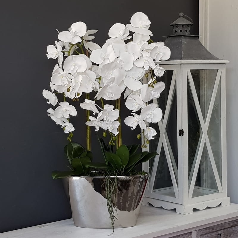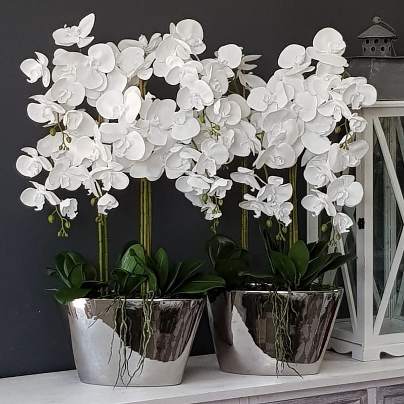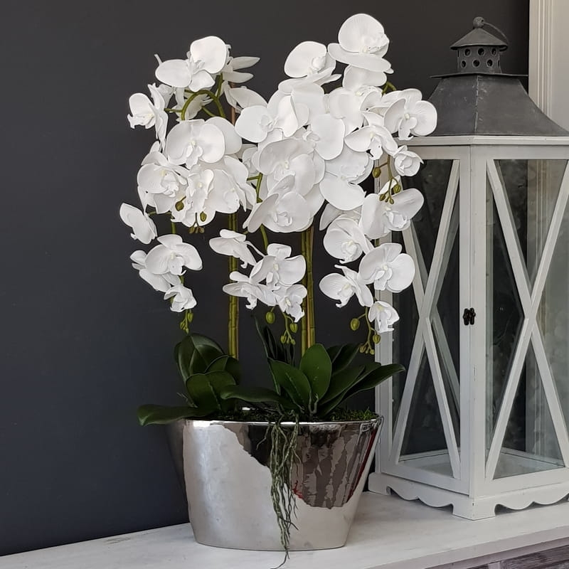 Sztuczny storczyk orchidea silikon biały Sonia silver
