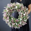 Wianek na drzwi kominek dekoracja na płytę Erica 45-50cm biało-różowy