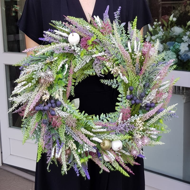 Wianek na drzwi kominek dekoracja na płytę Erica 45-50cm fiolety