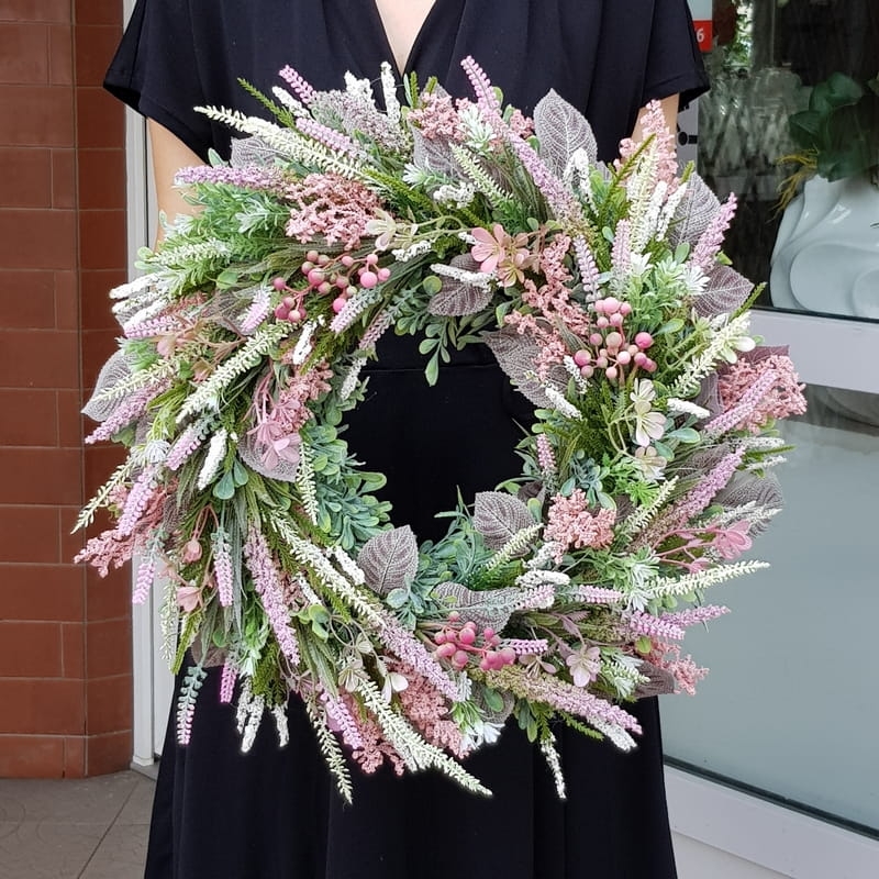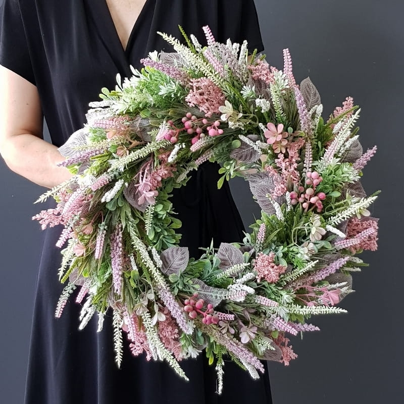 Wianek na drzwi kominek dekoracja na płytę Erica 45-50cm róż