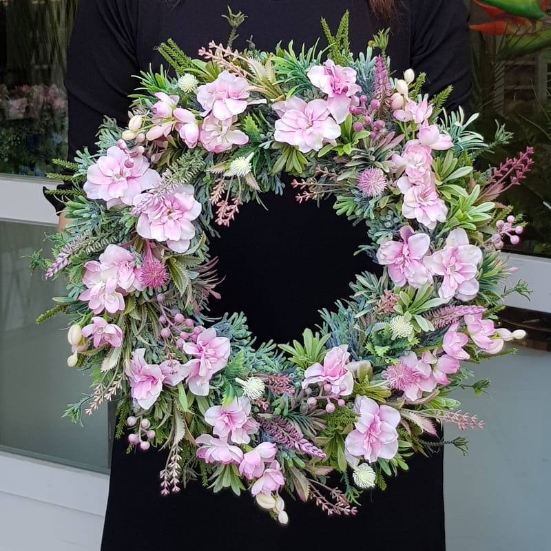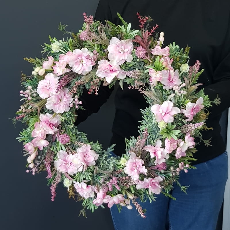 Wianek na drzwi kominek ścianę dekoracja Erina 45cm róż