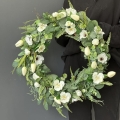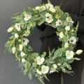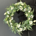 Oryginalny kwiatowy wianek wykonany z wysokiej jakości roślin sztucznych i dodatków. Całość jest stworzona z dbałością o najdrobniejszy szczegół. Podstawę stanowi wianek z tworzywa sztucznego. Wszystkie dodatki są idealnie dopasowane kolorystycznie tak, aby tworzyły spójną całość. Wianek nadaje się zarówno do powieszenia na drzwi, nad kominek jak i do położenia na płytę z dodatkiem znicza. Idealny do sesji fotograficznych.