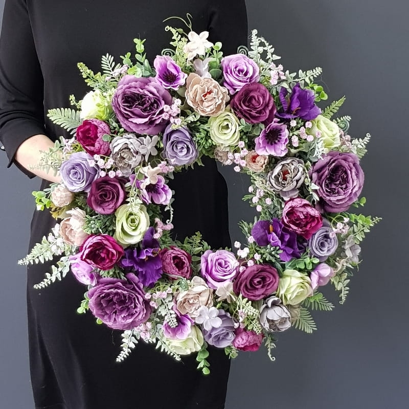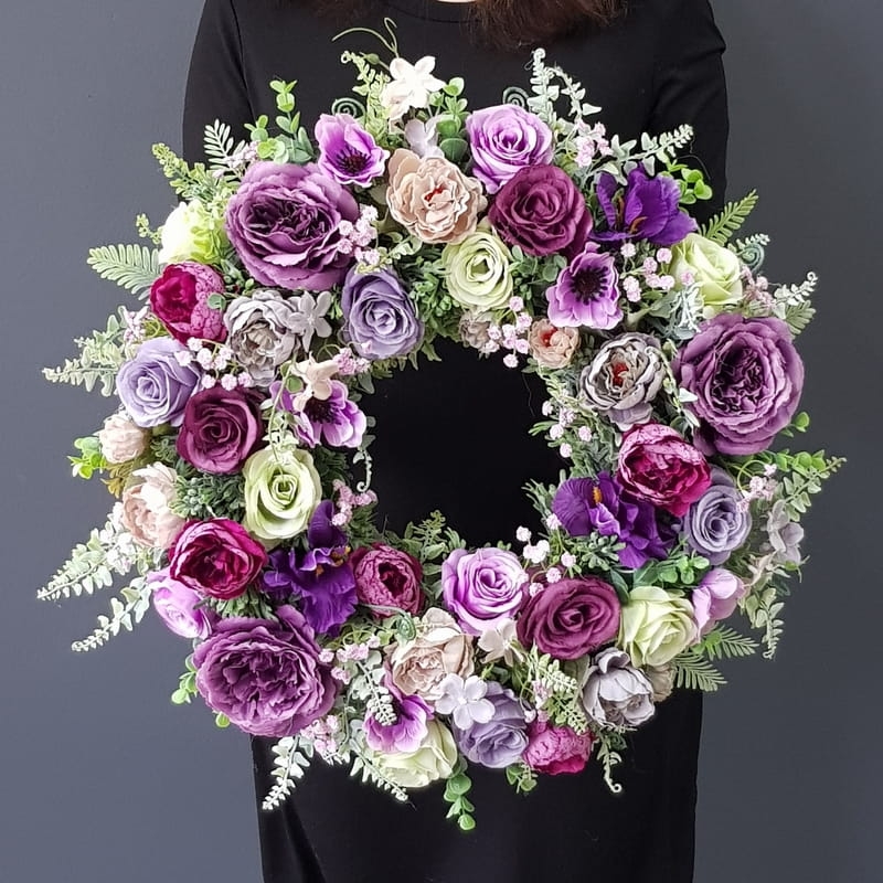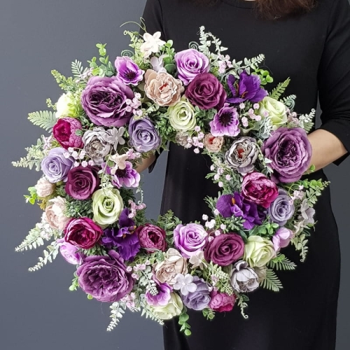 Wianek na drzwi kwiatowy wiosna lato wianki Aurelia 50cm wz.1