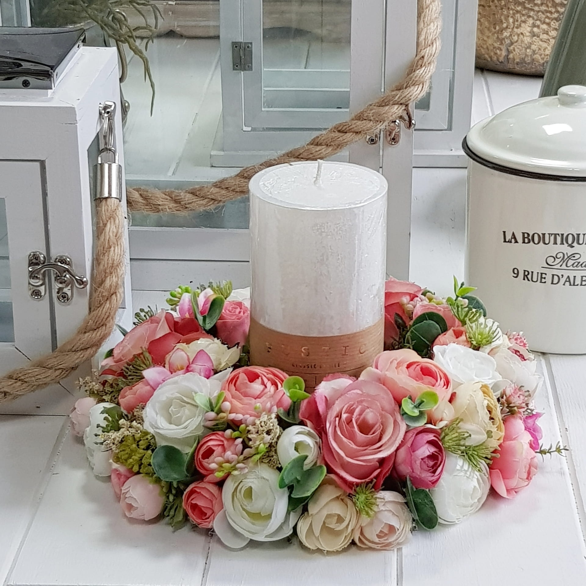 Wianek stroik pod świecę dekoracja na stół Milde S róż