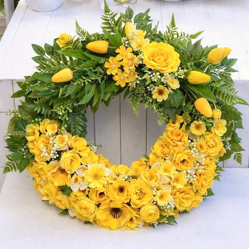 Wieniec wianek „Verona” – kompozycja kwiatowa premium 50cm żółta