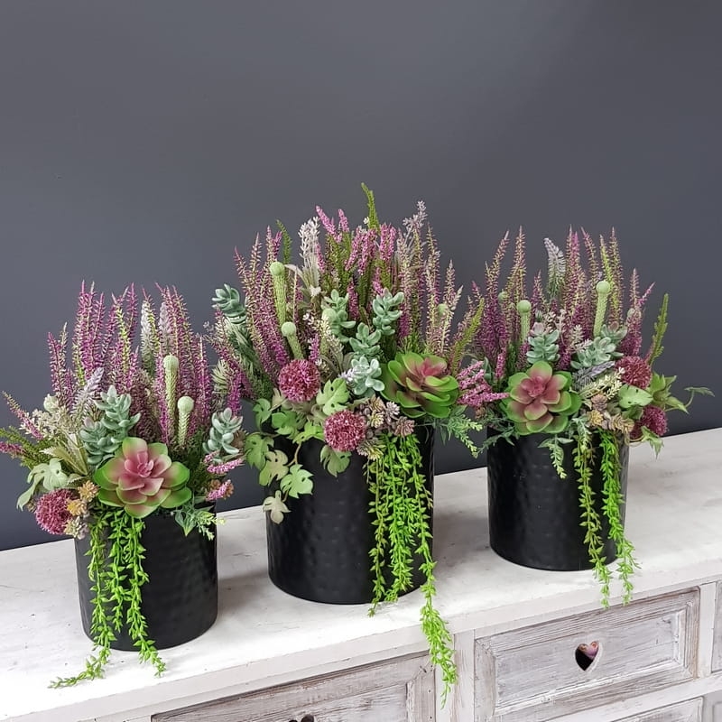 Wrzosy sukulenty w czarnej donicy Bergen wielkość M