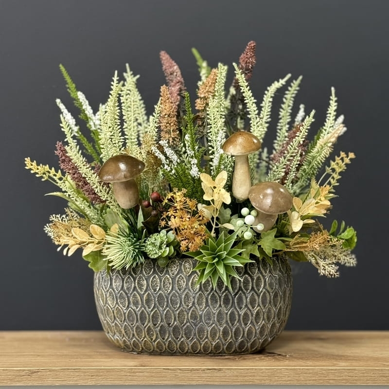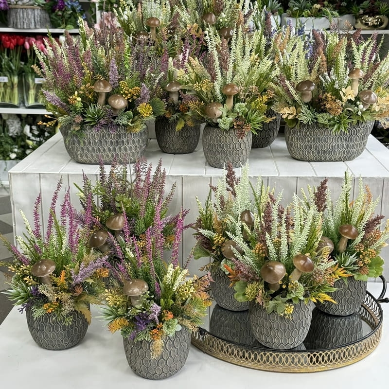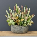 Sztuczne wrzosy osadzone w ceramicznej donicy to stylowa i trwała dekoracja. Nasza propozycja to połączenie różnych kolorów wrzosów w jednej donicy, uzupełnionych jesiennymi dodatkami. Piękne, energetyczne zestawienie kolorów i faktur. Oryginalna, ceramiczna donica w stonowanej kolorystyce doskonale współgra z naturalnym wyglądem sztucznych wrzosów, co stanowi niezwykle harmonijne połączenie. Doskonale sprawdzają się jako element dekoracyjny, zarówno wewnątrz, jak i na zewnątrz pomieszczeń. Ich wyjątkowy urok i różnorodność kolorów stanowią cenne walory estetyczne dla każdego miejsca, w którym są umieszczone. Poszczególne kompozycje minimalnie mogą się różnić rozkładem i rodzajami kwiatów, w zależności od dostępności, jednak kolorystyka i wizualny efekt końcowy są zawsze zachowane.