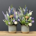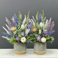 Sztuczne wrzosy osadzone w ceramicznej donicy to stylowa i trwała dekoracja. Nasza propozycja to połączenie różnych kolorów wrzosów w jednej donicy, uzupełnionych jesiennymi dodatkami. Piękne, energetyczne zestawienie kolorów i faktur. Oryginalna, ceramiczna donica w stonowanej kolorystyce doskonale współgra z naturalnym wyglądem sztucznych wrzosów, co stanowi niezwykle harmonijne połączenie. Doskonale sprawdzają się jako element dekoracyjny, zarówno wewnątrz, jak i na zewnątrz pomieszczeń. Ich wyjątkowy urok i różnorodność kolorów stanowią cenne walory estetyczne dla każdego miejsca, w którym są umieszczone. Poszczególne kompozycje minimalnie mogą się różnić rozkładem i rodzajami kwiatów, w zależności od dostępności, jednak kolorystyka i wizualny efekt końcowy są zawsze zachowane.