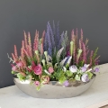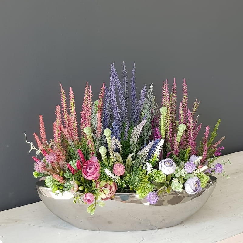 Sztuczne wrzosy osadzone w ceramicznej donicy to stylowa i trwała dekoracja. Takie kompozycje dodają uroku i charakteru zarówno wnętrzom, jak i otoczeniu na zewnątrz. Podłużna donica doskonale współgra z naturalnym wyglądem sztucznych wrzosów, co tworzy harmonijną i nowoczesną estetykę. Doskonale sprawdzają się jako element dekoracyjny, zarówno wewnątrz, jak i na zewnątrz pomieszczeń. Ich wyjątkowy urok i różnorodność kolorów stanowią cenne walory estetyczne dla każdego miejsca, w którym są umieszczone.