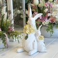 Urocza figurka przedstawiająca parę zajączków z żółtymi bukietami to idealna propozycja do wiosennych i wielkanocnych aranżacji. Delikatna forma, subtelne przetarcia oraz pastelowe detale nadają jej wyjątkowego, rustykalnego charakteru.