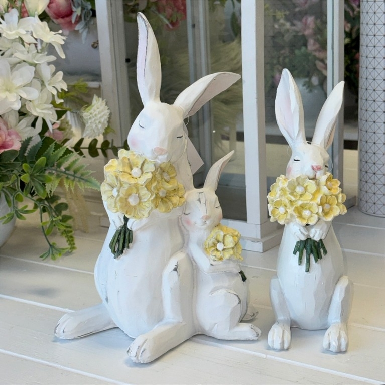 Figurka doskonale sprawdzi się jako dekoracja stołu, komody, parapetu lub półki. Wprowadza do wnętrza przytulność, świeżość i odrobinę sielskiego uroku. Świetnie komponuje się z kwiatami, lampionami oraz innymi ozdobami w stylu skandynawskim i farmhouse. Figurka pięknie prezentuje się zarówno samodzielnie, jak i w szerszej aranżacji dekoracyjnej — to także doskonały pomysł na prezent