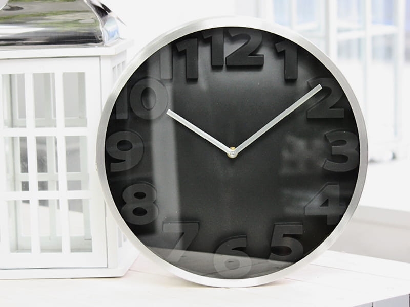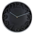Duży, stylowy zegar ścienny w stylu retro w kolorze czarnym. Szczególnego uroku nadają mu trójwymiarowe cyfry. Sprawdzi się zarówno w kalsycznym, jak i nowoczesnym wnętrzu. Zasilany baterią 1xAA (nie jest dołączona do zegara). Kolekcję zegarów dopełniają inne stylowe wzory. Zegar nie posiada funkcji budzenia.