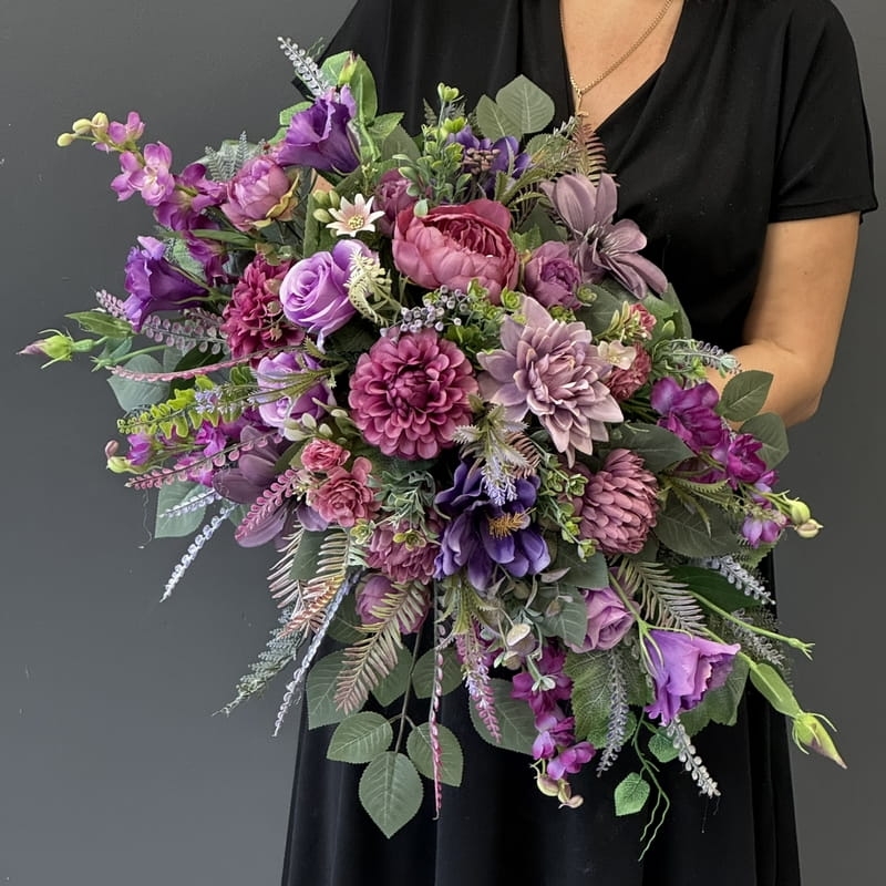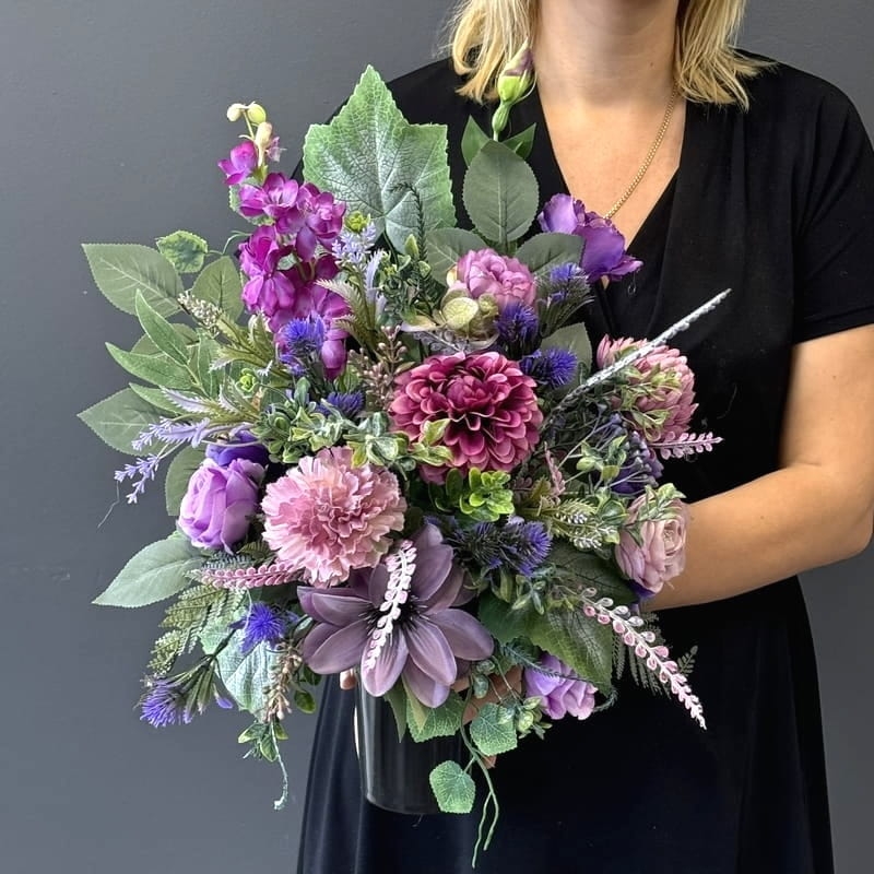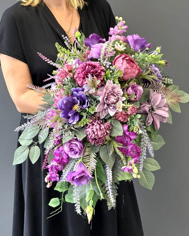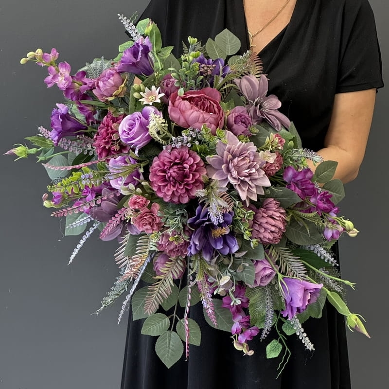 Zestaw kompozycja funeralna wiązanka nagrobna stroik na grób + bukiet Lorena wz.2 fiolet