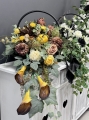 Zestaw kompozycja nagrobna stroik na grób kosz Alva de luxe kalie + bukiet jesienne brązy