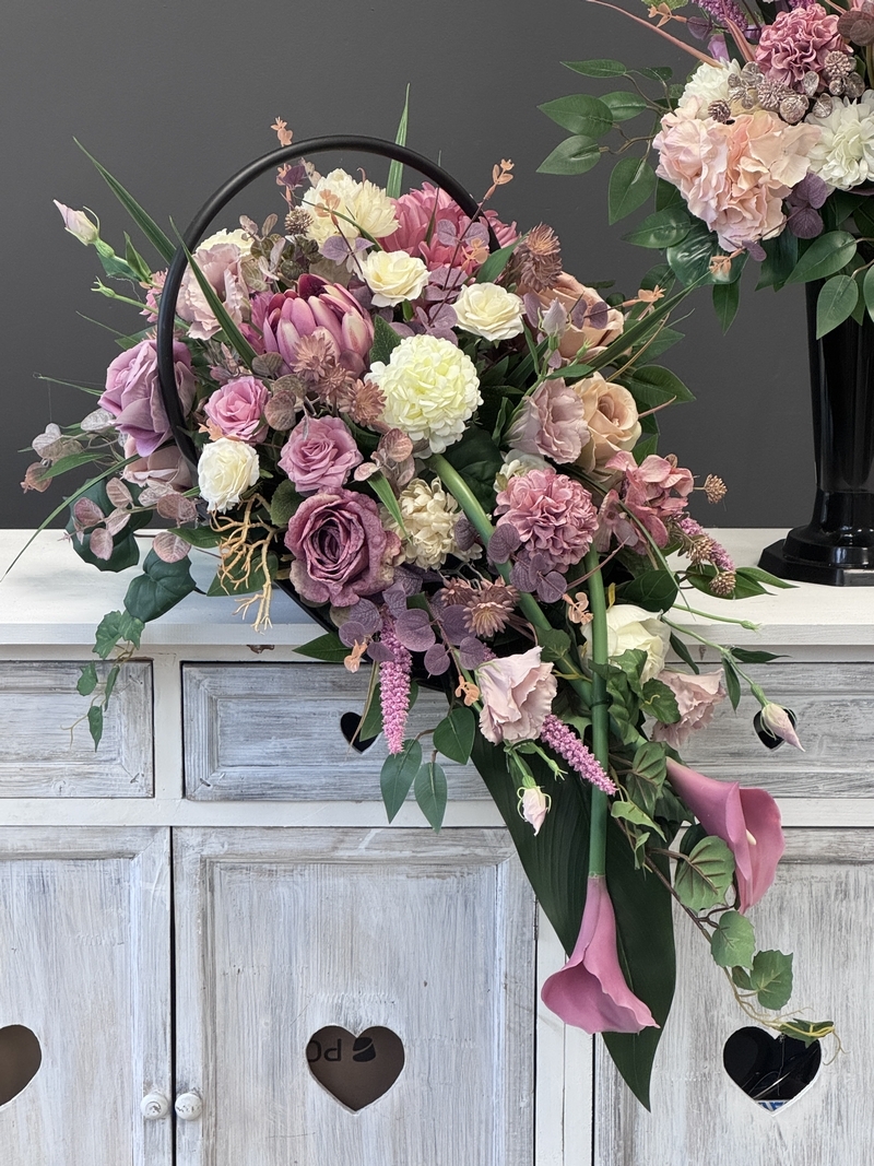 Piękna i oryginalna dekoracja jest doskonałą formą wyrażenia pamięci o bliskich. Wyszukana forma, najwyższej jakości kwiaty i perfekcyjne zestawienie kolorów sprawiają, że doskonale prezentuje się na nagrobkach.