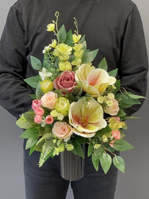Piękna i oryginalna dekoracja jest doskonałą formą wyrażenia pamięci o bliskich. Oryginalna forma, najwyższej jakości kwiaty i perfekcyjne zestawienie kolorów sprawiają, że doskonale prezentuje się na nagrobkach.