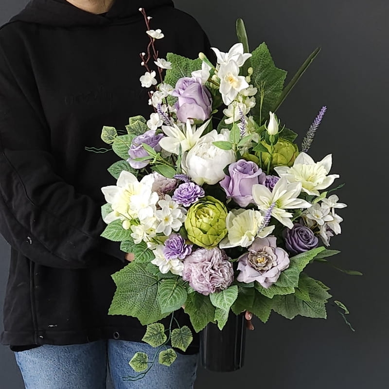 Piękna i oryginalna dekoracja jest doskonałą formą wyrażenia pamięci o bliskich. Wyszukana forma, najwyższej jakości kwiaty i perfekcyjne zestawienie kolorów sprawiają, że doskonale prezentuje się na nagrobkach.
