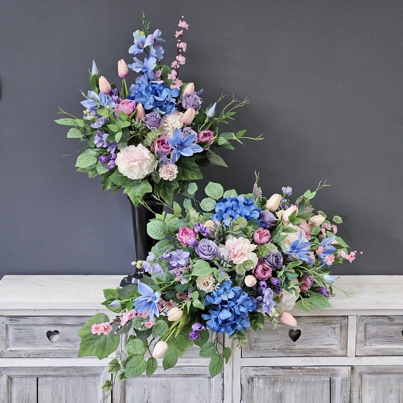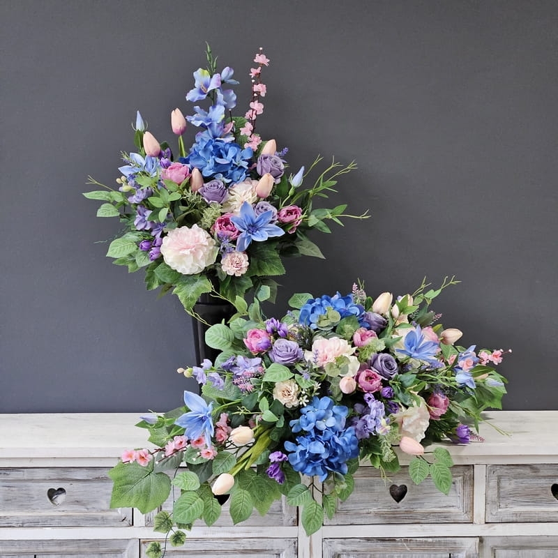 Piękna i oryginalna dekoracja jest doskonałą formą wyrażenia pamięci o bliskich. Wyszukana forma, najwyższej jakości kwiaty i perfekcyjne zestawienie kolorów sprawiają, że doskonale prezentuje się na nagrobkach.