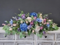 Postawa kompozycji wykonana z tworzywa sztucznego, dodatkowo obciążona cementem, wypełniona dużą ilością kwiatów, liści i roślinnych dodatków w przepięknej, stonowanej kolorystyce. Kompozycja ma kształt wrzeciona. Jest wydłużona obustronnie. Dominują kwiaty w stonowanej kolorystyce oraz liście w pastelowej zieleni. Poszczególne kompozycje mogą się różnić rozkładem i rodzajami kwiatów, w zależności od dostępności, jednak kolorystyka i efekt końcowy są zawsze zachowane.