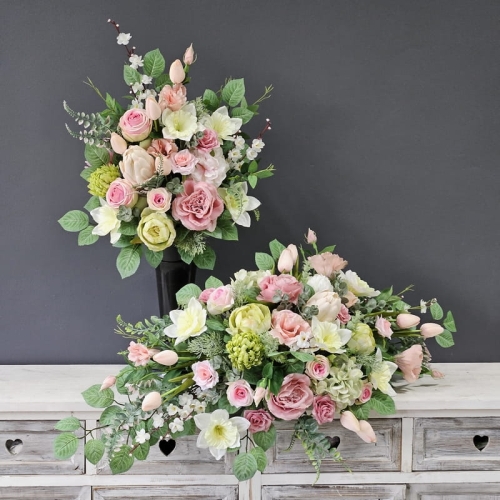 Zestaw nagrobny kompozycja na płytę + bukiet do wazonu Karen