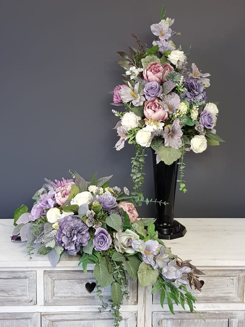 Zestaw nagrobny kompozycja na płytę + bukiet do wazonu Tori